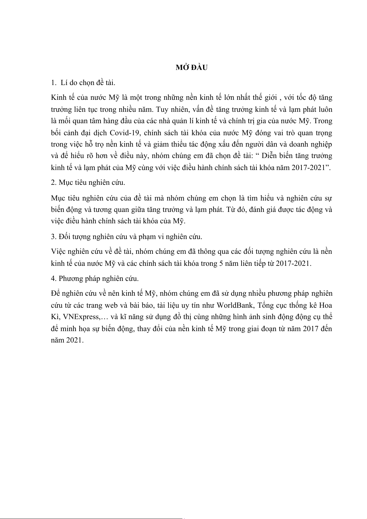 kinh tế và lạm phát của Mỹ cùng với việc điều hành chính sách tài khóa năm 2017-2021”. 2. Mục tiêu nghiên cứu.