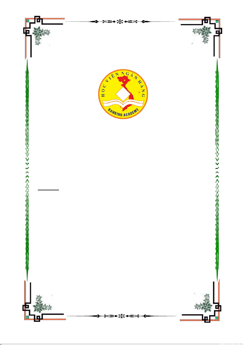 BỘ GIÁO DỤC VÀ ĐÀO TẠO HỌC VIỆN NGÂN HÀNG BÀI TẬP LỚN