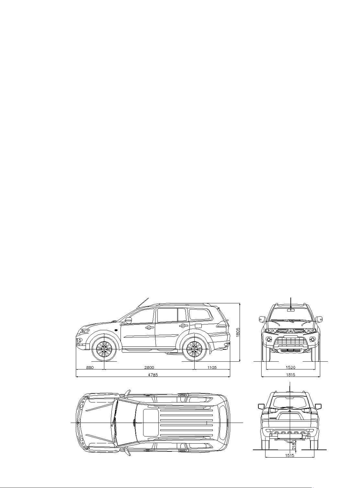 – Các kích thước cơ bản: STT Thông số Ký hiệu Kích thước Đơn vị 1 Chiều dài toàn bộ L0 4785 mm 2 Chiều rộng toàn bộ B0 1815 mm 3 Chiều cao toàn bộ H0 1805 mm 4 Chiều dài cơ sở L 2800 mm 5 Vết bánh trước B1 1520 mm 6 Vết bánh sau B2 1515 mm 7 Khoảng sáng gầm xe H1 218 mm 8 Vận tốc tối đa Vmax 180 km/h