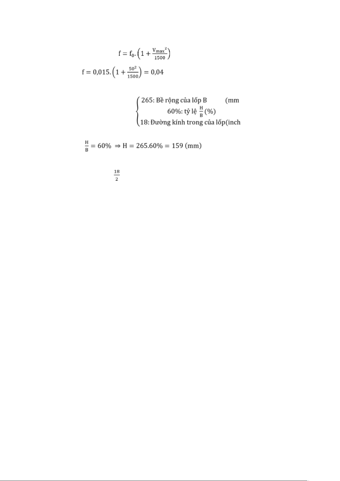 – Hệ số cản mặt đường tương ứng với Vmax = 50 m/s – Bán kính bánh xe : ) Có kí hiệu: 265/60R18 => )