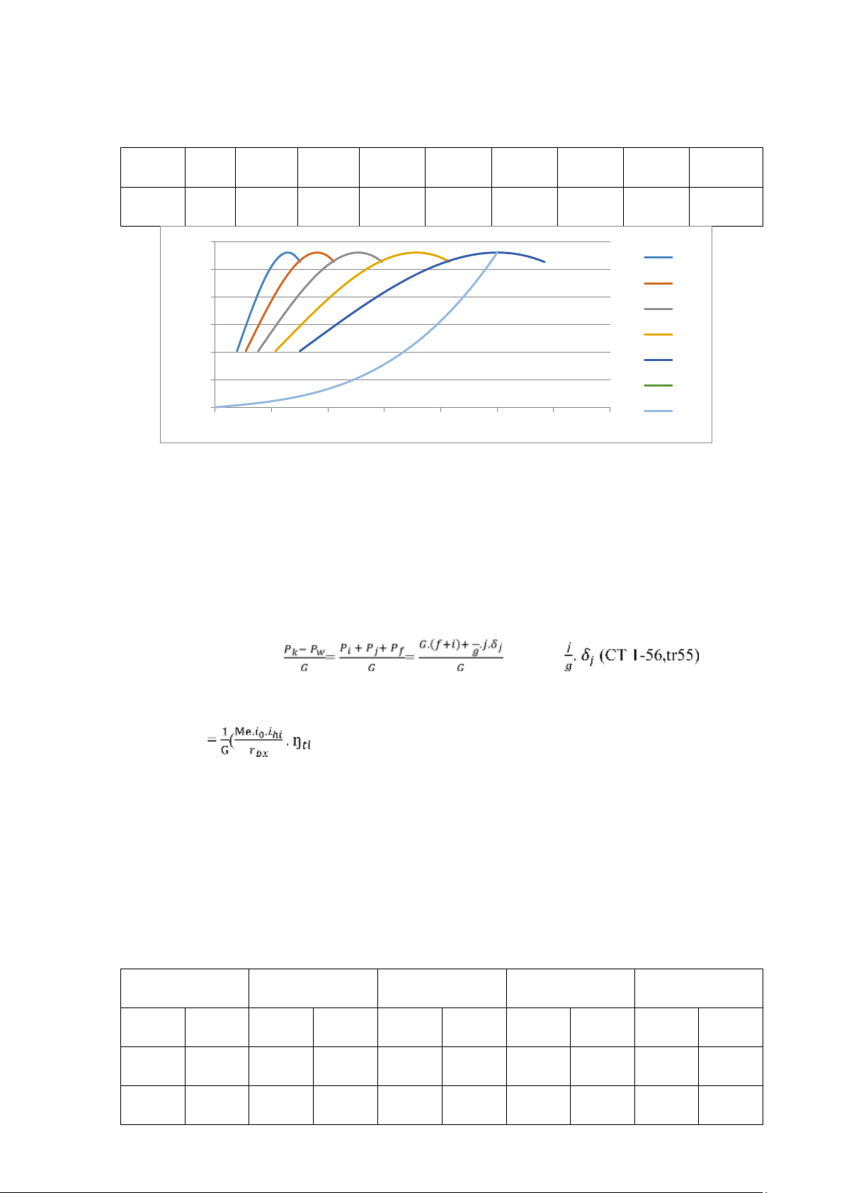 Lập bảng và tính toán các giá trị Nki và vi tương ứng: Ne(kW) Nk(kW) V1 V2 V3 V4 V5 45,3 40,7 3,9 5,4 7,6 10,7 10,7 54,2 48,8 4,6 6,4 9,0 12,6 12,6 68,8 61,9 5,7 8,0 11,2 15,8 15,8 82,7 74,4 6,8 9,6 13,5 18,9 18,9 95,4 85,9 8,0 11,2 15,7 22,1 22,1 106,5 95,8 9,3 12,8 17,9 25,2 25,2 115,4 103,8 10,2 14,4 20,2 28,4 28,4 124,7 112,7 12,9 18,1 25,4 35,6 35,6