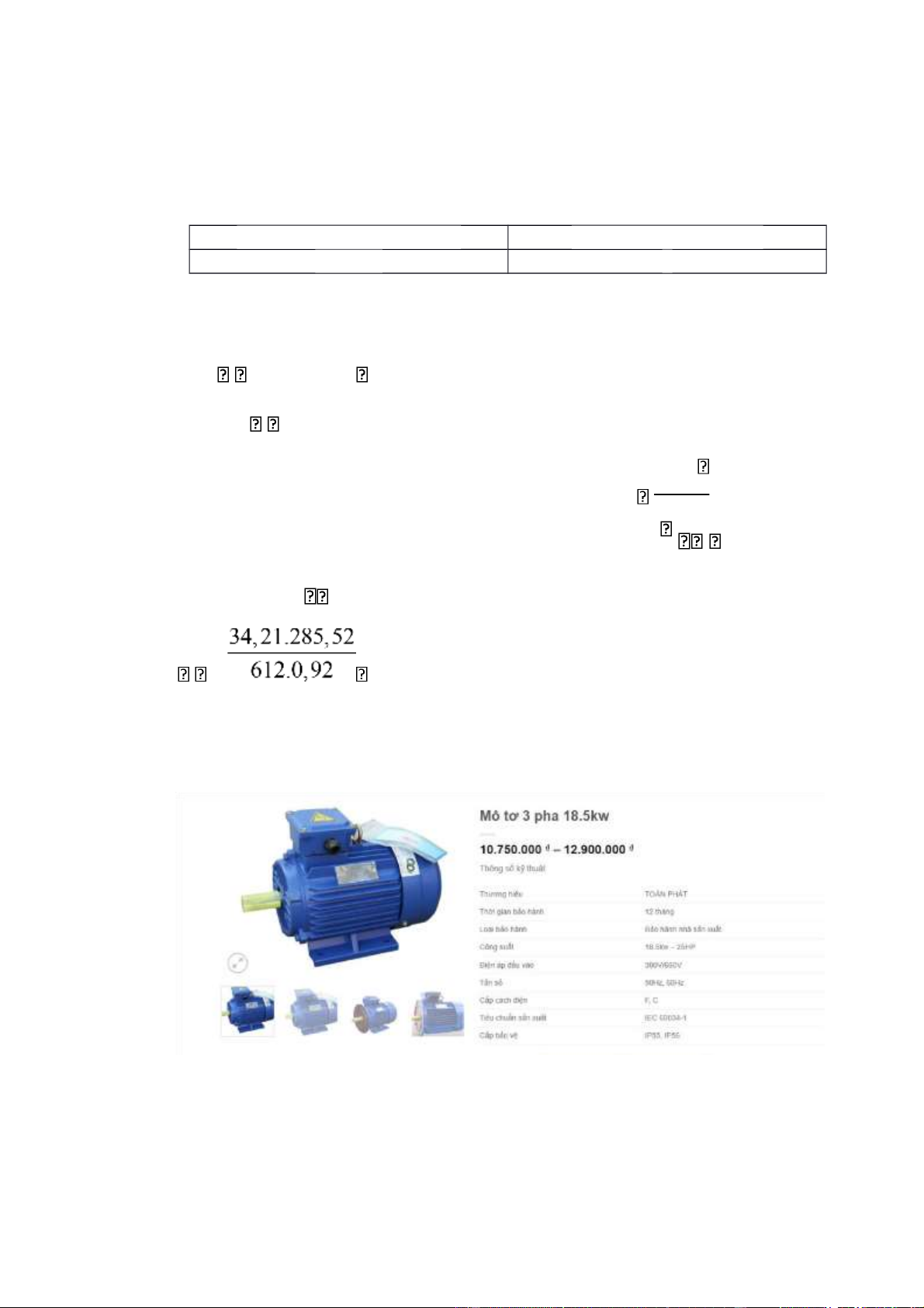Từ công suất trên chọn loại động cơ điện – Motor điện Toàn Phát 18,5kW: