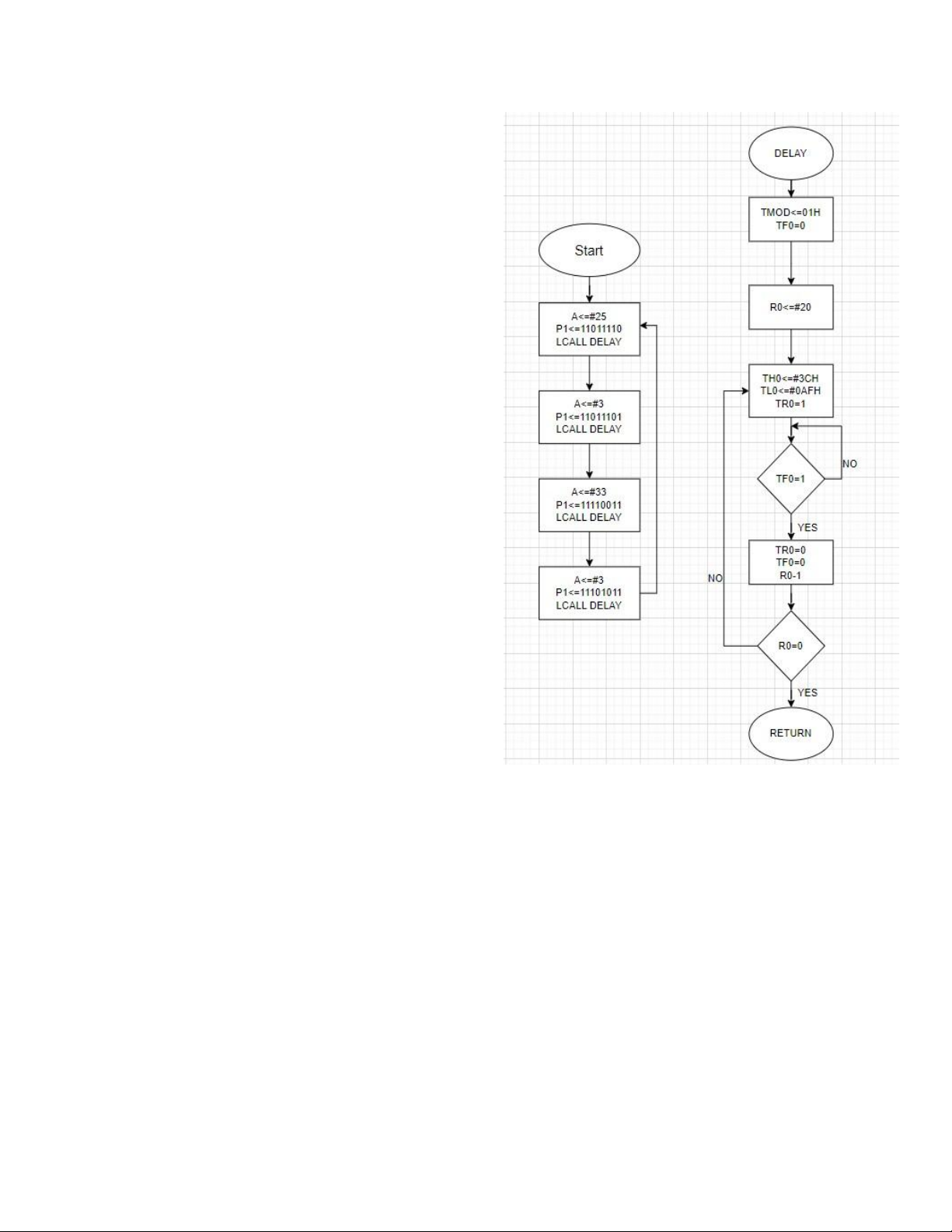 Biết điều khiển 0 là đèn sáng , 1 là đèn tắt. MAIN: MOV A,#25 MOV P1,#11011110B lOMoAR cPSD| 61554479 LJMP DELAY MOV A,#3 MOV P1,#11011101B LJMP DELAY MOV A,#33 MOV P1,11110011B LJMP DELAY MOV A,#3 MOV P1,11101011B LJMP DELAY LJMP MAIN DELAY: MOV TMOD,#01H CLR TF0 MOV R0,#20 LAP: MOV TH0,#3CH MOV TL0,#0AFH SETB TR0 WAIT JNB TF0,WAIT CLR TR0 CLR TF0 DJNZ R0,LAP RET lOMoAR cPSD| 61554479