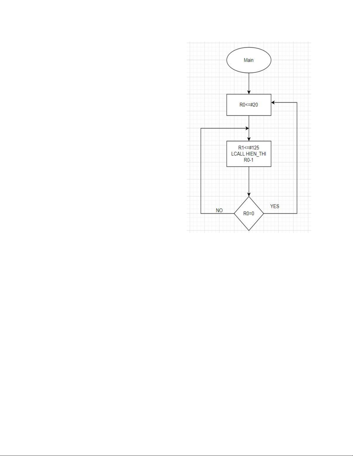 chân P1.0. Biết xung nhịp thạch anh 12MHz (Ton =70% và Toff=30%) ORG 30H lOMoAR cPSD| 61554479 MOV TMOD, #01H SETB P1.0 Bat: MOV R2, #7 SJMP lap Tat: MOV R2, #3 lap MOV TH0, #0D8H MOV TL0, #0EFH SETB TR0 Wait: JNB TF0,Wait CLR TR0 DJNZ R2, lap JNB P1.0, Tat SJMP Bat END lOMoAR cPSD| 61554479