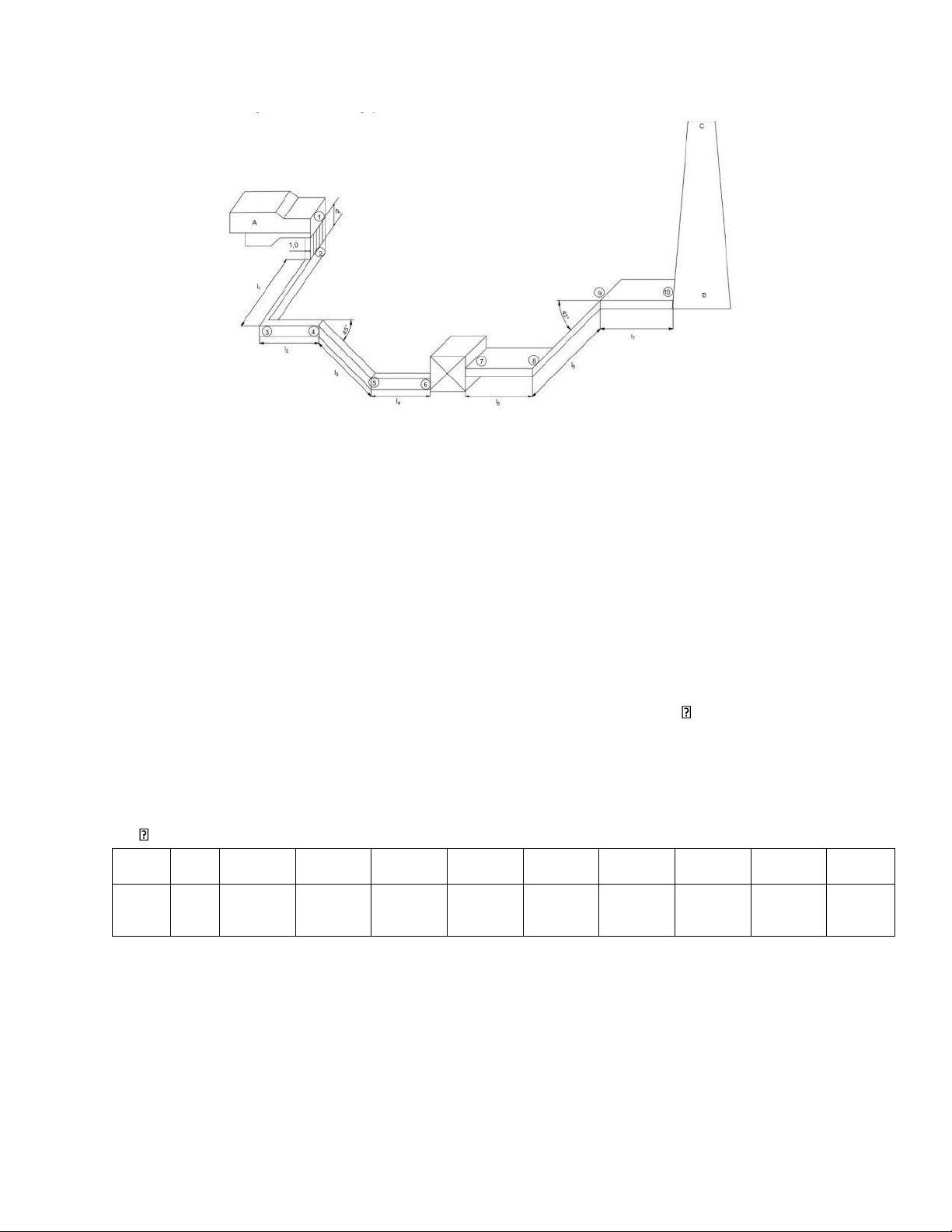 Bảng chọn kích thước mặt ngang của các đoạn Các đoạn 1—2 2—3 3—4 4—5 5—6 6—7 7—8 8—9 9—10 Chiều dài 3.6 5 6 4 4 4 8 8 TbTđn Chiều rộng mặt cắt 5 4 6 6 6 6 6 6 Chiều cao mặt cắt 2.5 3 3 3 3 3 3 3