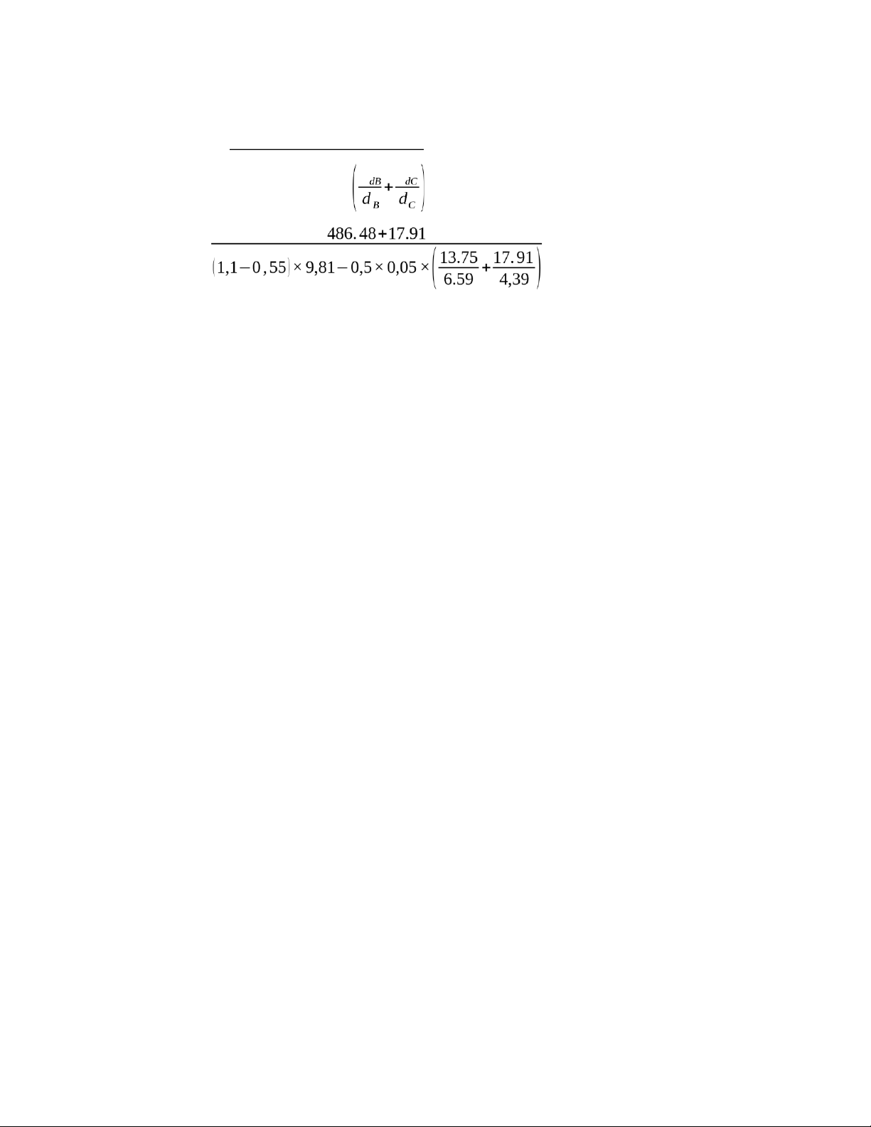 d B=1,5×dC=1,5×4,39=6,59(m)