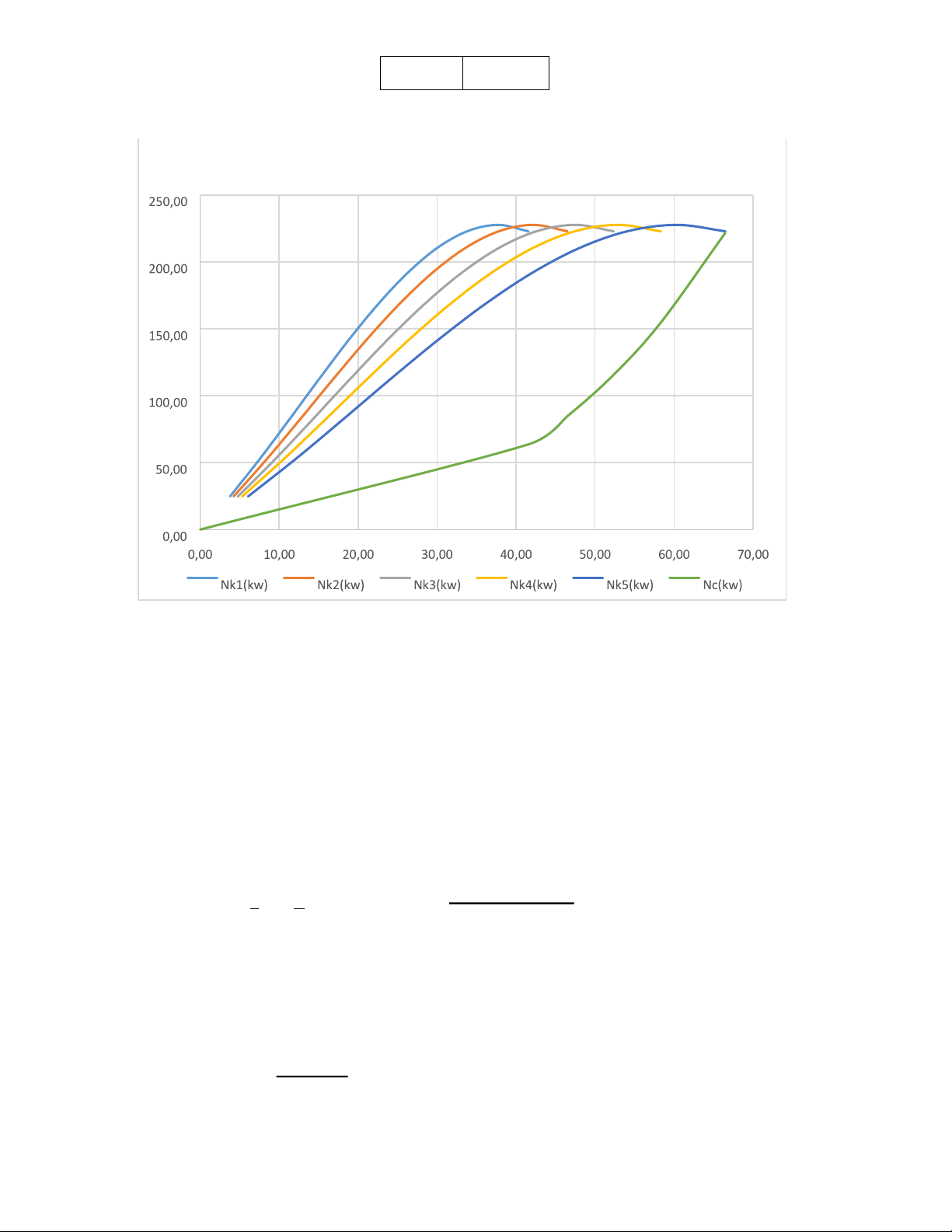 Lập bảng và tính toán các giá trị Nki và vi tương ứng: ne(v/ph) Ne(KW) Me(N.m) V1 V2 V3 V4 V5 Nk (kw) 600,00 27,57 438,88 3,78 4,23 4,76 5,30 6,05 24,82 1200,00 58,69 467,07 7,56 8,46 9,52 10,61 12,09 52,82 1800,00 91,83 487,20 11,34 12,68 14,28 15,91 18,14 82,65 2400,00 125,47 499,28 15,11 16,91 19,04 21,21 24,18 112,93 3000,00 158,11 503,30 18,89 21,14 23,80 26,52 30,23 142,30 3600,00 188,21 499,28 22,67 25,37 28,56 31,82 36,27 169,39 4200,00 214,27 487,20 26,45 29,59 33,32 37,12 42,32 192,84 4800,00 234,76 467,07 30,23 33,82 38,08 42,42 48,36 211,28 5400,00 248,16 438,88 34,01 38,05 42,84 47,73 54,41 223,35 6000,00 252,97 402,64 37,78 42,28 47,60 53,03 60,45 227,67 6600,00 247,66 358,35 41,56 46,50 52,36 58,33 66,50 222,89