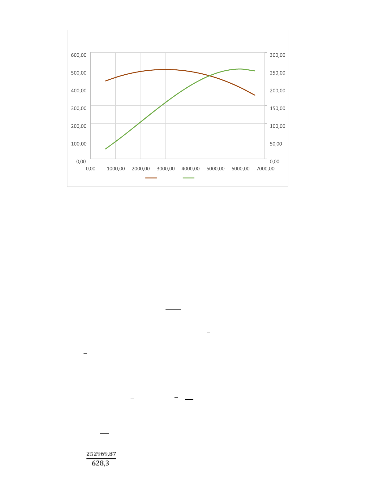 bảng thể hiện mối quan hệ giữa D và v ở từng tay số: ne(v/p Ne(K Me(N. h) W) m) Tay số 1 Tay số 2 Tay số 3 Tay số 4 tay số 5 V1(m V2(m V3(m V4(m V5(m /s) /s) /s) /s) /s) D1 D2 D3 D4 D5 600,0 0,3 0,3 0,2 0,2 0,2 0 5 1 8 5 2 27,57 438,88 3,78 4,23 4,76 5,30 6,05 1200, 0,3 0,3 0,2 0,2 0,2 00 7 3 9 6 3 58,69 467,07 7,56 8,46 9,52 10,61 12,09 1800, 0,3 0,3 0,3 0,2 0,2 00 9 5 1 7 4 91,83 487,20 11,34 12,68 14,28 15,91 18,14 2400, 125,4 0,3 0,3 0,3 0,2 0,2 00 7 9 5 1 7 4 499,28 15,11 16,91 19,04 21,21 24,18 3000, 158,1 0,4 0,3 0,3 0,2 0,2 00 1 0 5 1 7 3 503,30 18,89 21,14 23,80 26,52 30,23 3600, 188,2 0,3 0,3 0,3 0,2 0,2 00 1 9 4 0 6 2 499,28 22,67 25,37 28,56 31,82 36,27 4200, 214,2 0,3 0,3 0,2 0,2 0,2 00 7 7 3 8 5 0 487,20 26,45 29,59 33,32 37,12 42,32 4800, 234,7 0,3 0,3 0,2 0,2 0,1 00 6 5 1 6 3 8 467,07 30,23 33,82 38,08 42,42 48,36
