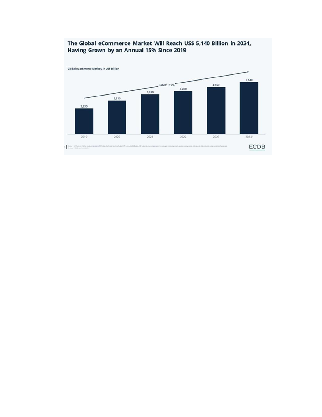 Hình 1. Tăng trưởng doanh thu TMĐT toàn cầu giai đoạn 2019–2024 Nguồn : ECDB