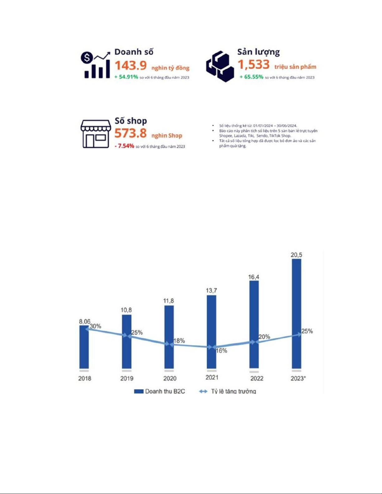 Hình 2. Doanh số và sản lượng TMĐT Việt Nam nửa đầu năm 2024 Nguồn: Metric.vn