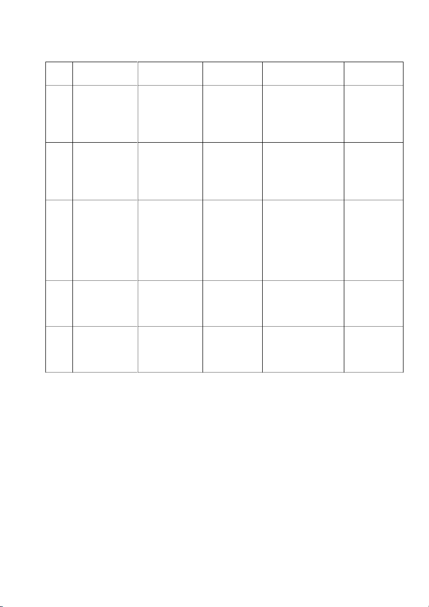 Bảng đánh giá công việc STT Họ và tên Mã sinh viên Chức vụ Nhiệm vụ Mức độ đóng góp - Lập dàn bài Nhóm - Làm nội dung 1 Trần Minh Phương 25A4011394 trưởng chương I 18% - Check nội dung tổng hợp - Làm nội dung 2.2 Hoạt động của 2 Trần Thanh 25A4011395 Thành viên Agribank 22% Phương - Tổng hợp word - Thuyết trình - Làm nội dung 2.1 Giới thiệu chung về 3 Hoàng Như 25A4011406 Thành viên Agribank 20,5% Quỳnh - Làm nội dung 3.3 Giải pháp - Thuyết trình - Làm nội dung 4 Nguyễn Thị 25A4011786 Thành viên phần 3.1 Tác 20,5% Thu Thủy động tích cực - Làm PPT - Làm nội dung 5 Vũ Phương