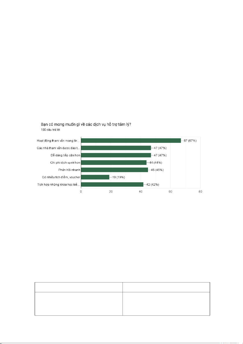Theo dữ liệu khảo sát trên 100 sinh viên về nhu cầu sử dụng dịch vụ tư vấn tâm lý của