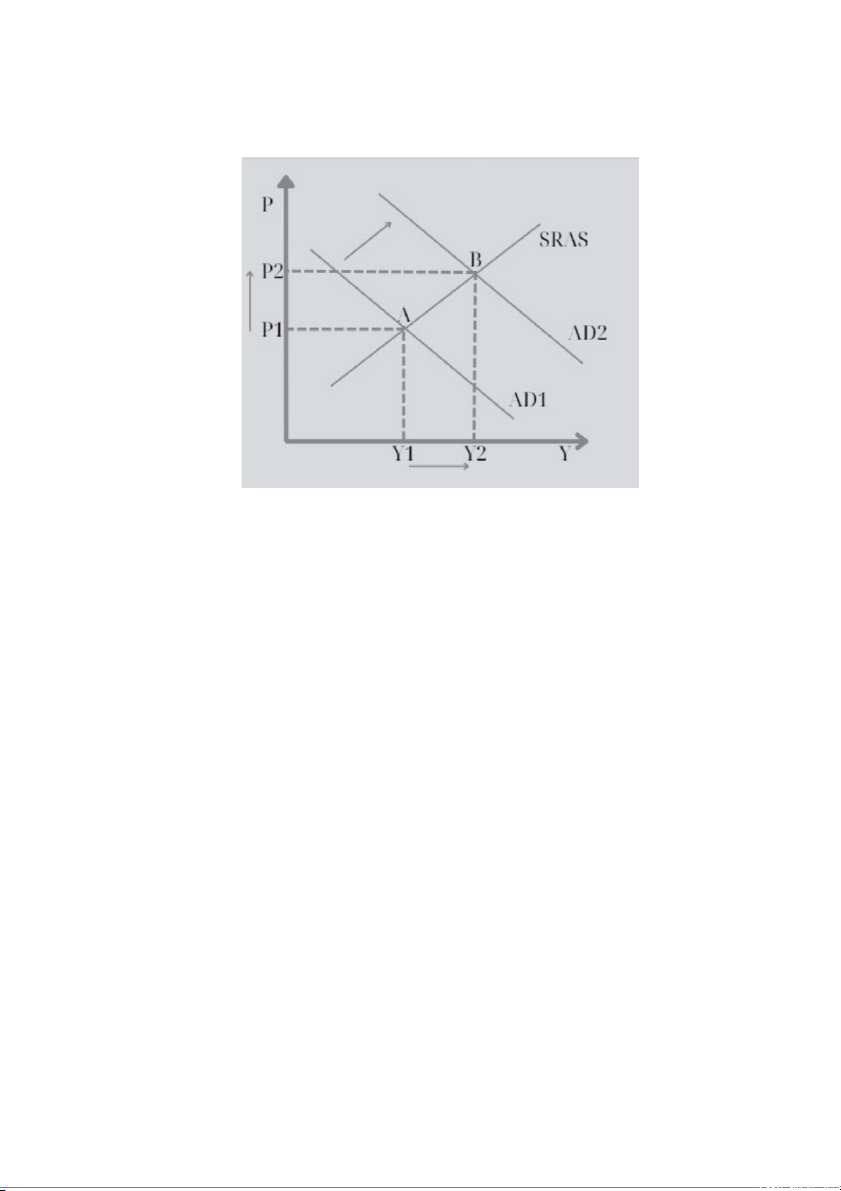 ). Khi tổng cầu tăng, đường tổng cầu dịch phải từ 1