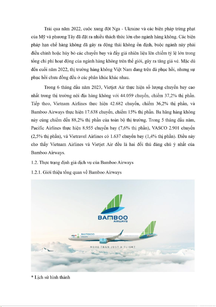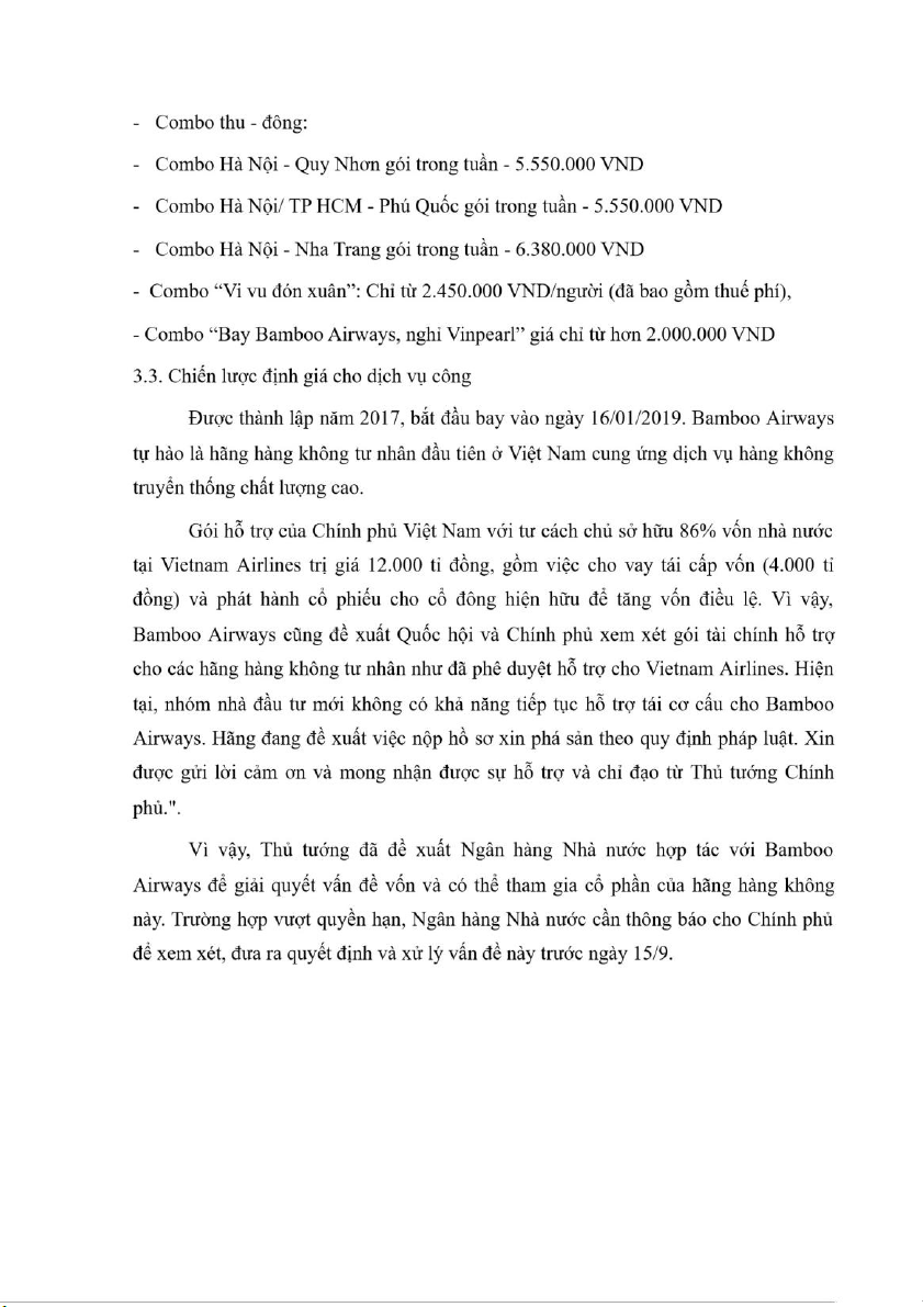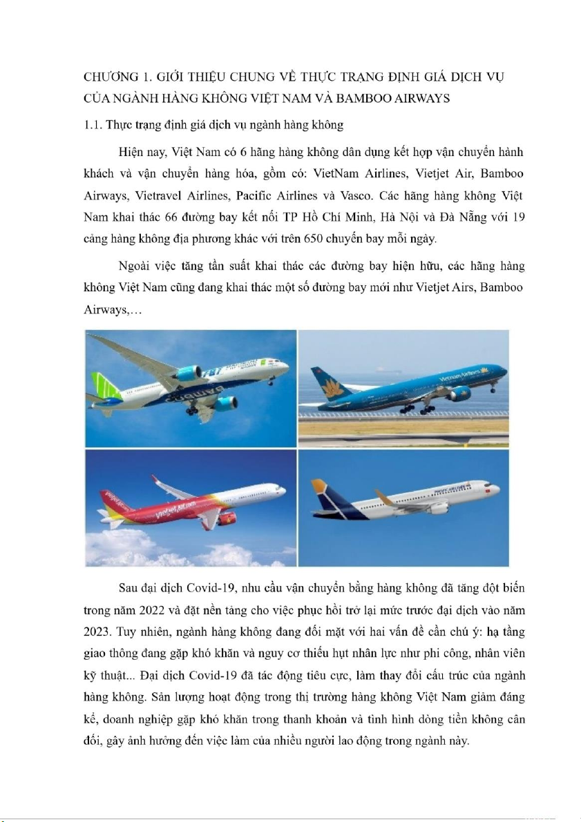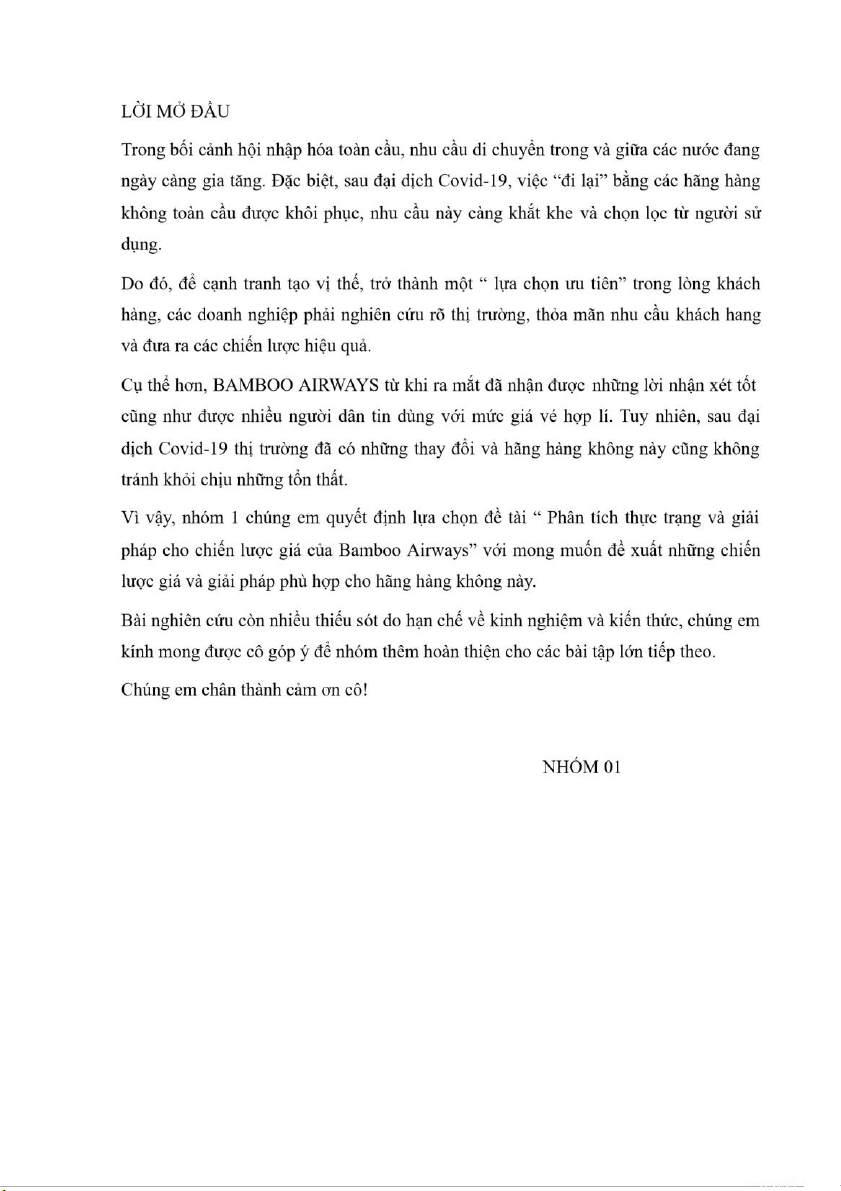 Đề tài: Phân tích thực trạng và giải pháp cho chiến lược giá của Bamboo Airways