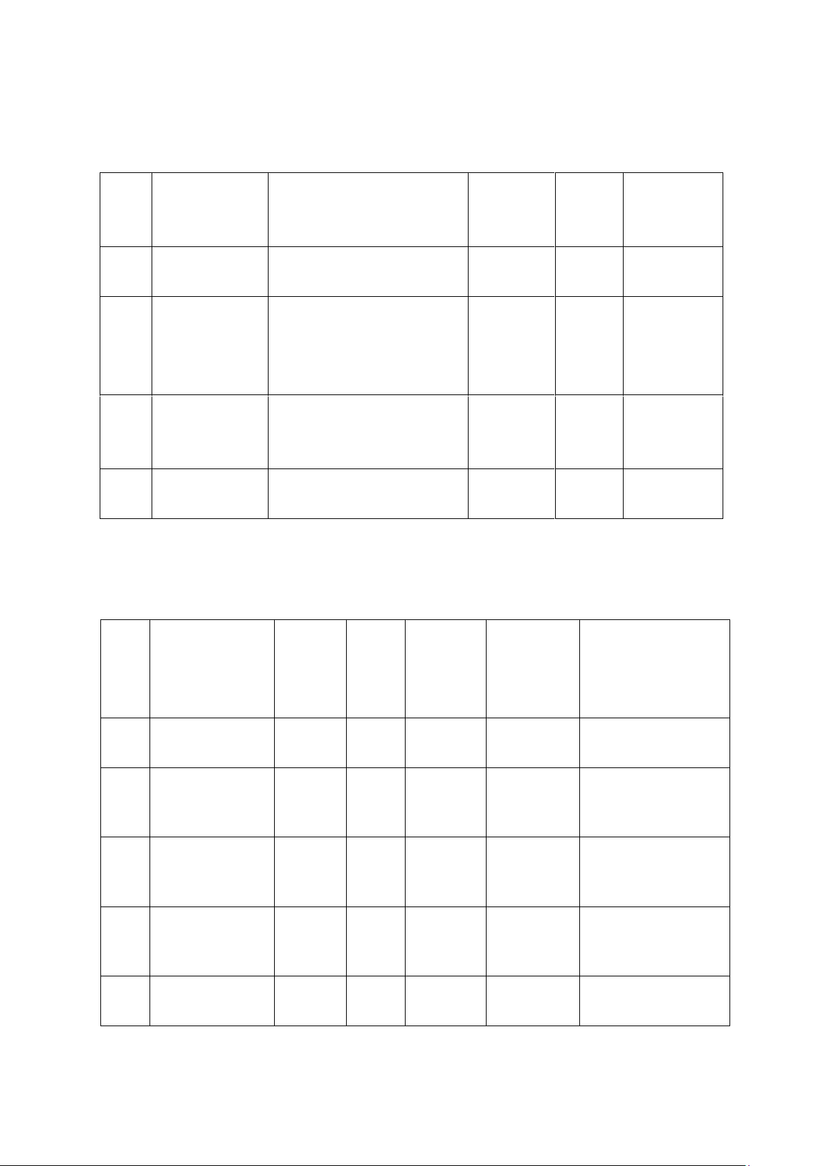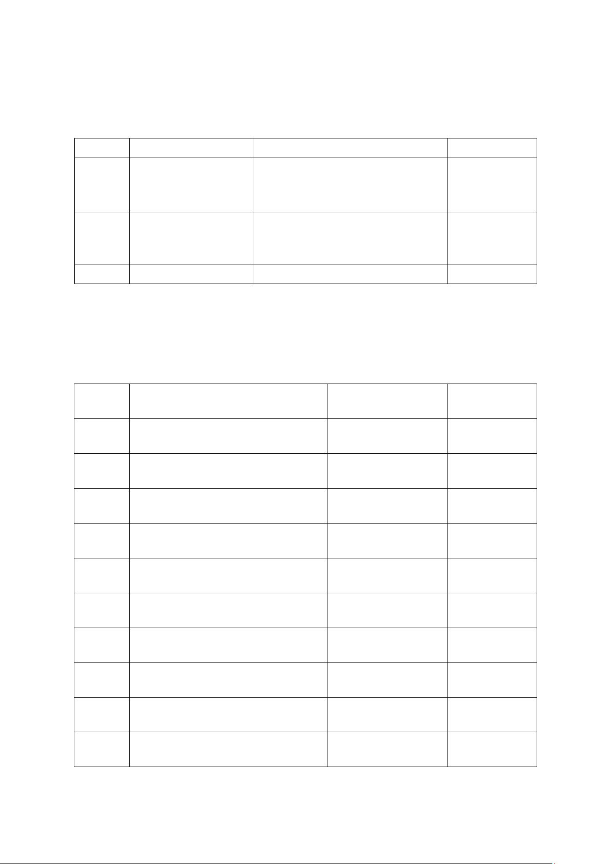 STT Loại Use Case Trọng Hệ số Số Điểm của Mô tả số BMT trường từng UCP hợp sử trường chuẩn dụng hợp 1 B 100 Các chức năng cơ bản Use case đơn 5 1 6 30 giản Use case trung 10 1 7 70 bình Use case phức 15 1 0 0 tạp 2 M 0 Các chức năng mở rộng Use case đơn 5 1.2 0 0 giản Use case trung 10 1.2 0 0 bình Use case phức 15 1.2 0 0 tạp 3 T 0 Các chức năng nâng cao Use case đơn 5 1.5 0 0 giản Use case trung 10 1.5 0 0 bình Use case phức 15 1.5 0 0 tạp TBF = Cộng 100 (1+2+3) Bảng 5. Bảng kê UCP