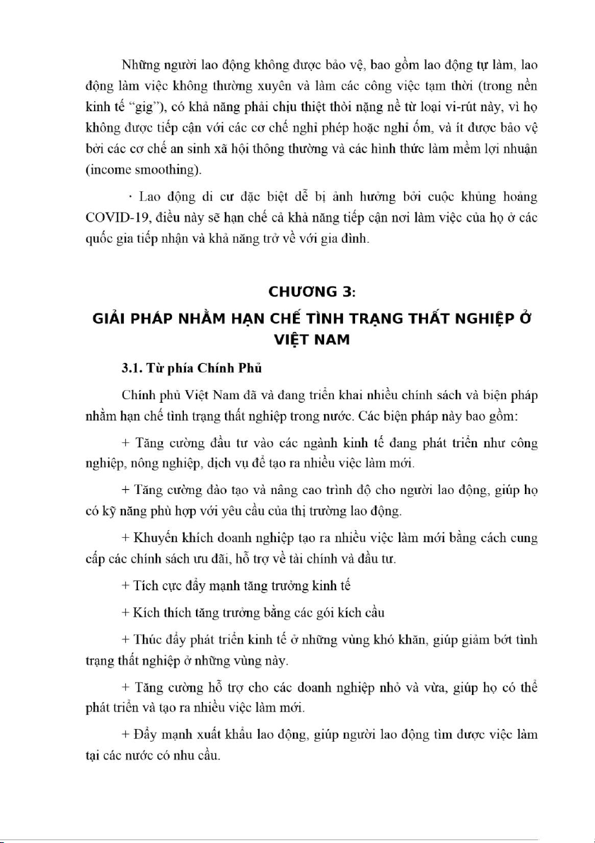 các biện pháp để giảm thiểu tỉ lệ thất nghiệp một cách tôi đa cũng như hỗ trợ