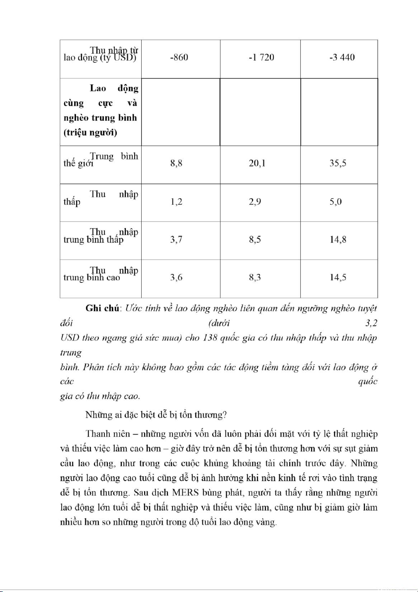 Bảng 1: Ước tính sụt giảm thu nhập của người lao động và gia tăng tình trạng lao