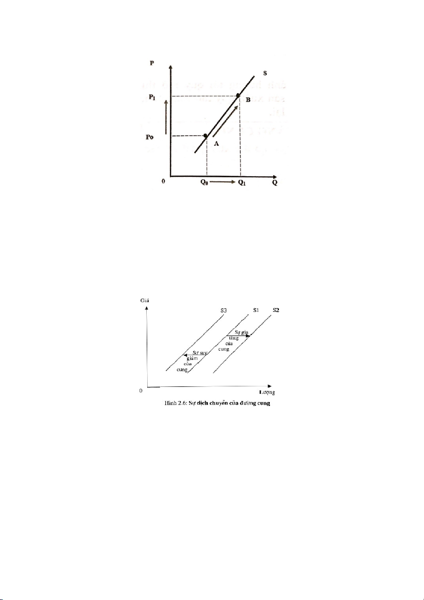 lên có nghĩa là chi phí sản xuất tăng, khiến cung hàng hóa đó giảm đi, đường cung dịch trái và ngược lại.