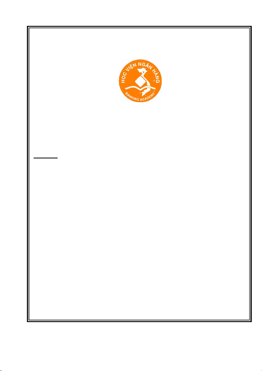 HỌC VIỆN NGÂN HÀNG KHOA NGÂN HÀNG BÀI TẬP LỚN HỌC PHẦN