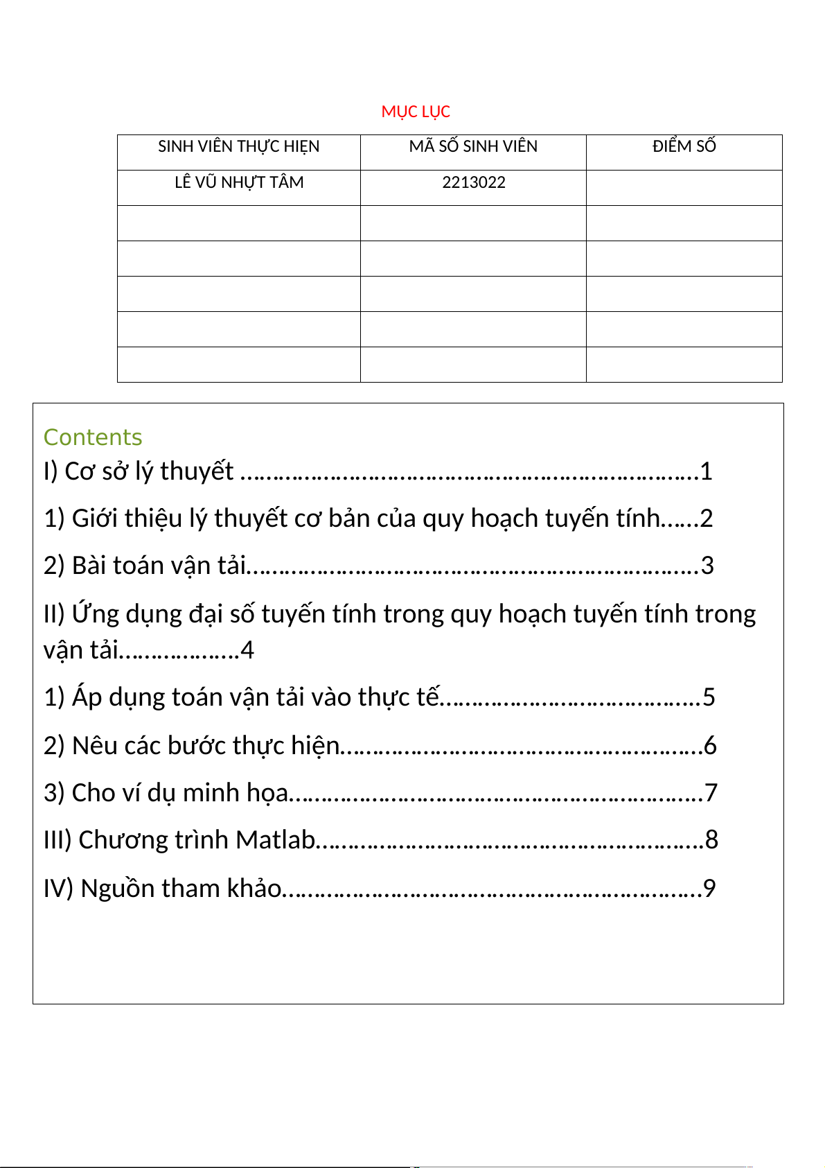 Ngày nộp báo cáo : 03/12/2022 MỤC LỤC SINH VIÊN THỰC HIỆN MÃ SỐ SINH VIÊN ĐIỂM SỐ LÊ VŨ NHỰT TÂM 2213022 Contents