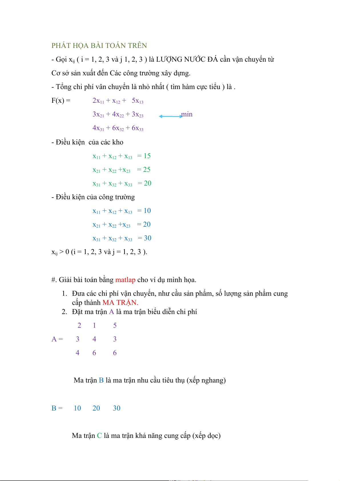 #. Giải bài toán bằng matlap cho ví dụ mình họa.
