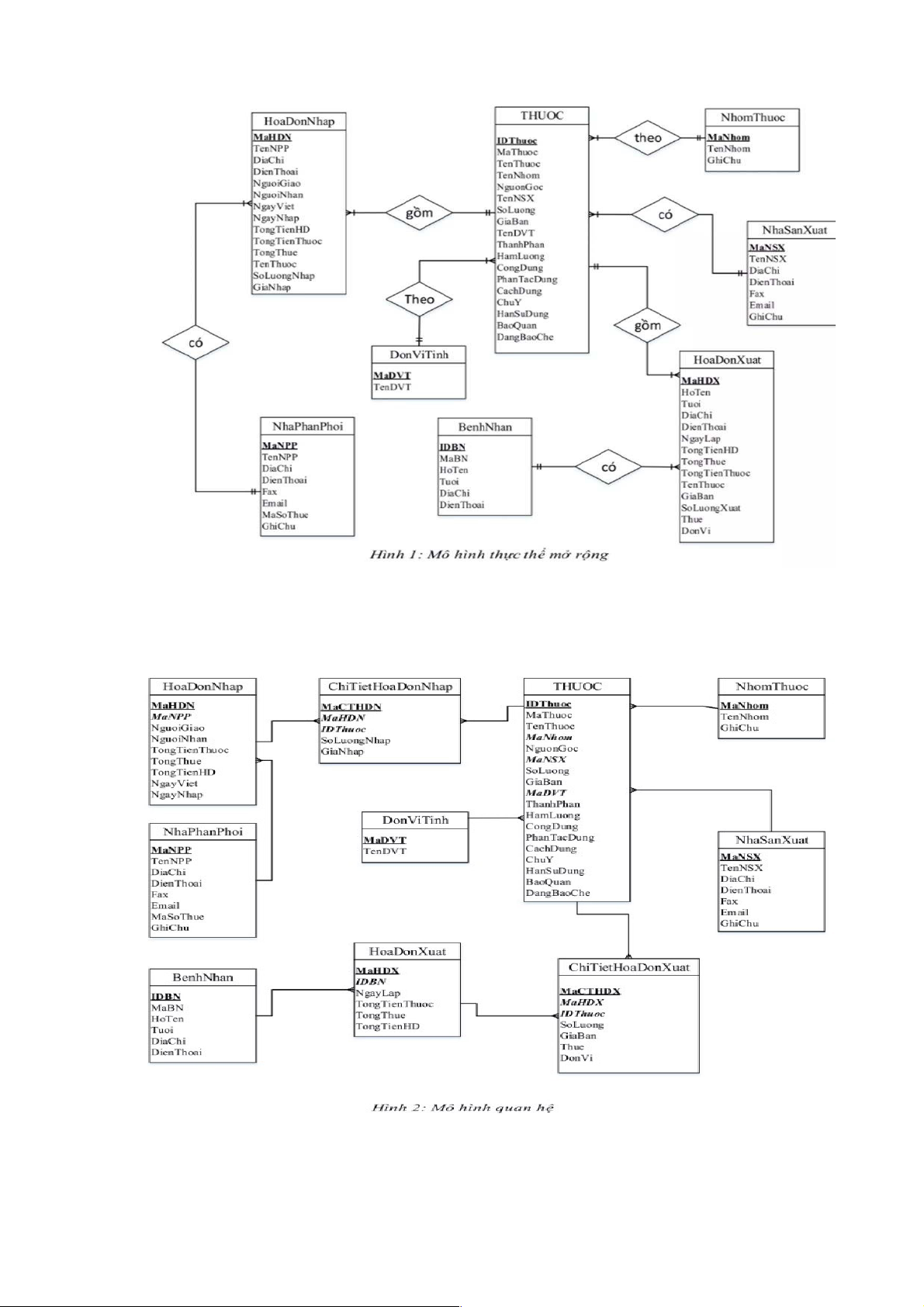 - Thuoc (IDThuoc, MaThuoc, TenThuoc, TenNhom, NguonGoc, TenNSX,