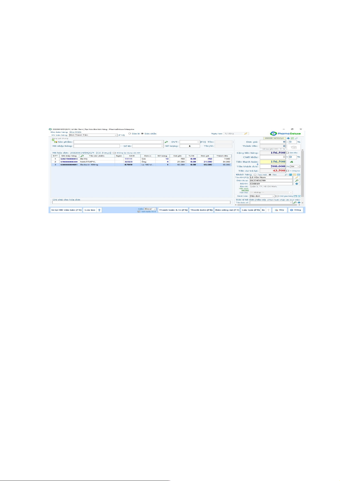 - Bán hàng và thanh toán: Tính năng quản lí quầy thuốc và tính toán tự động
