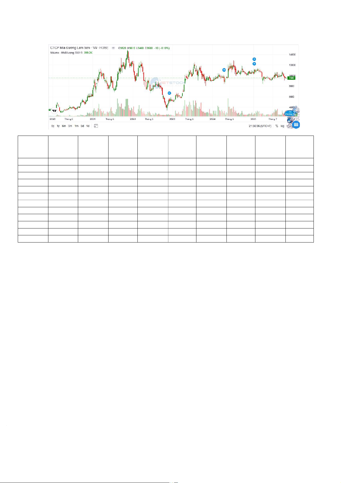 1.5. Diễn biến giá cổ phiếu 5 năm từ năm 2020 – 2024 Gía đng Gía đng Gía đng Gía đng Gía đng Năm cửa cửa cửa cửa cửa Năm Năm Năm Năm (nghìn (nghìn (nghìn (nghìn (nghìn VNĐ) VNĐ) VNĐ) VNĐ) VNĐ) 31/12/2024 10,65 29/12/2023 9,2 30/12/2022 5,32 31/12/2021 12,19 31/12/2020 6,14 29/11/2024 10,82 30/11/2023 9,24 30/11/2022 4,92 30/11/2021 12,93 30/11/2020 6,11 30/10/2024 10,51 31/10/2023 8,06 31/10/2022 4,74 29/10/2021 11,96 30/10/2020 4,69 30/09/2024 11 29/09/2023 10,19 30/09/2022 7,66 30/09/2021 11,41 30/09/2020 5,06 30/08/2024 10,6 31/08/2023 11,11 31/08/2022 8,52 31/08/2021 11,17 31/08/2020 4,06 31/07/2024 11,41 31/07/2023 11,07 29/07/2022 7,97 30/07/2021 7,52 31/07/2020 3,67 28/06/2024 11,18 30/06/2023 9,9 30/06/2022 7,43 30/06/2021 8,71 30/06/2020 3,83 31/05/2024 11,09 31/05/2023 10,44 31/05/2022 8,79 31/05/2021 7,5 29/05/2020 3,67 26/04/2024 9,12 28/04/2023 9,4 29/04/2022 9,1 29/04/2021 9,22 29/04/2020 3,55 29/03/2024 9,82 31/03/2023 6,06 31/03/2022 12,11 31/03/2021 10,12 31/03/2020 2,99 29/02/2024 10,11 28/02/2023 6,41 28/02/2022 10,08 26/02/2021 9,18 28/02/2020 4,38 31/01/2024 9,65 31/01/2023 5,83 28/01/2022 9,03 29/01/2021 7,81 31/01/2020 3,67
