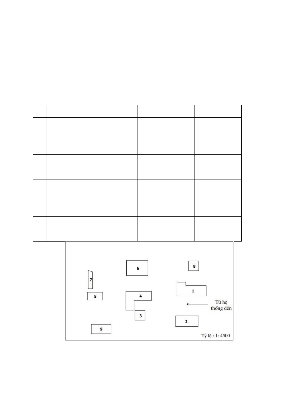 Bảng 1.1 và Hình 1.1 cho số liệu tổng quan của phụ tải toàn nhà máy bao gồm vị trí, diện tích,