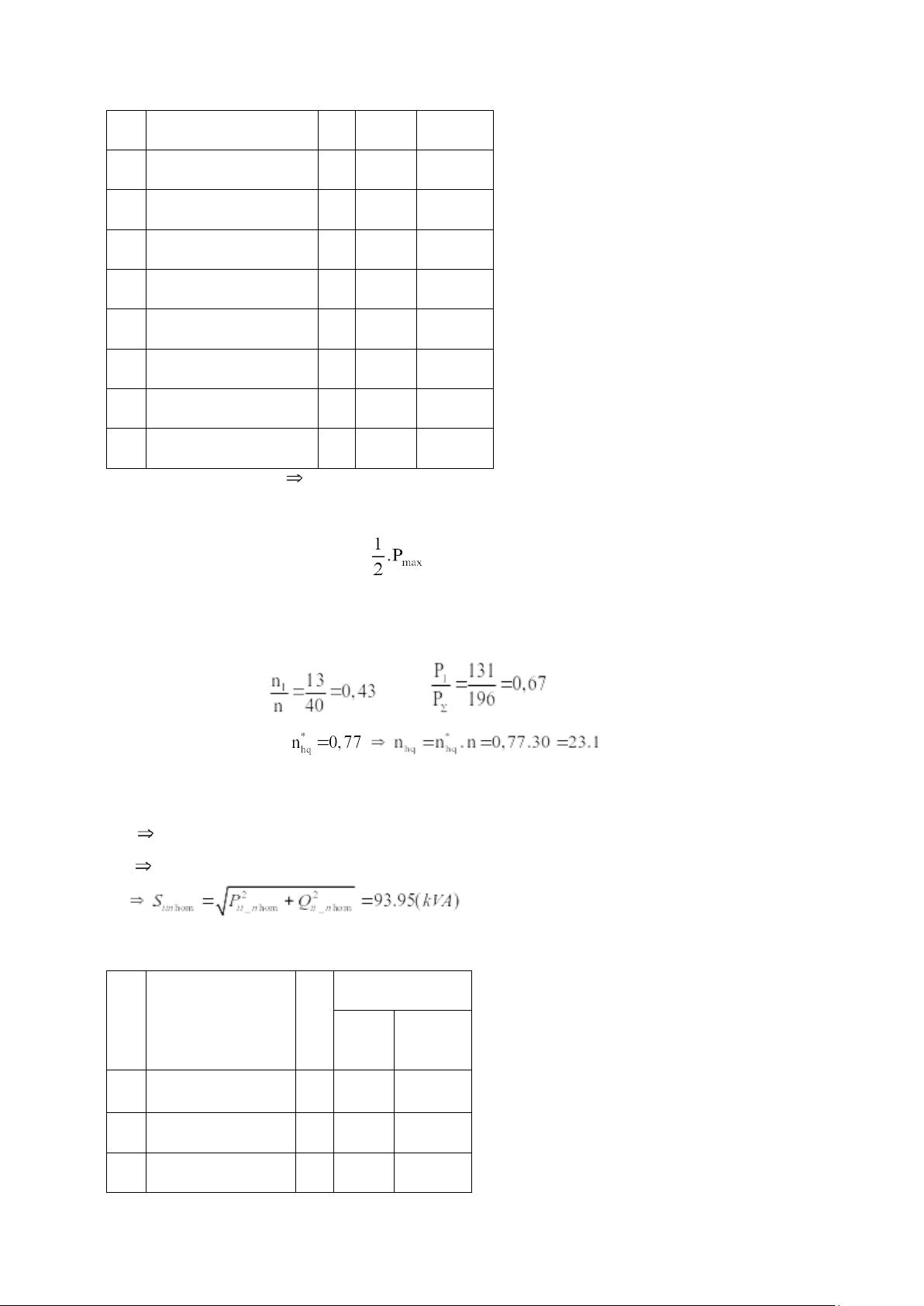 Tổng công suất của n1 thiết bị trên là P1 = 131 Số tương đối n* ; P* = = Tra bảng ta tìm được
