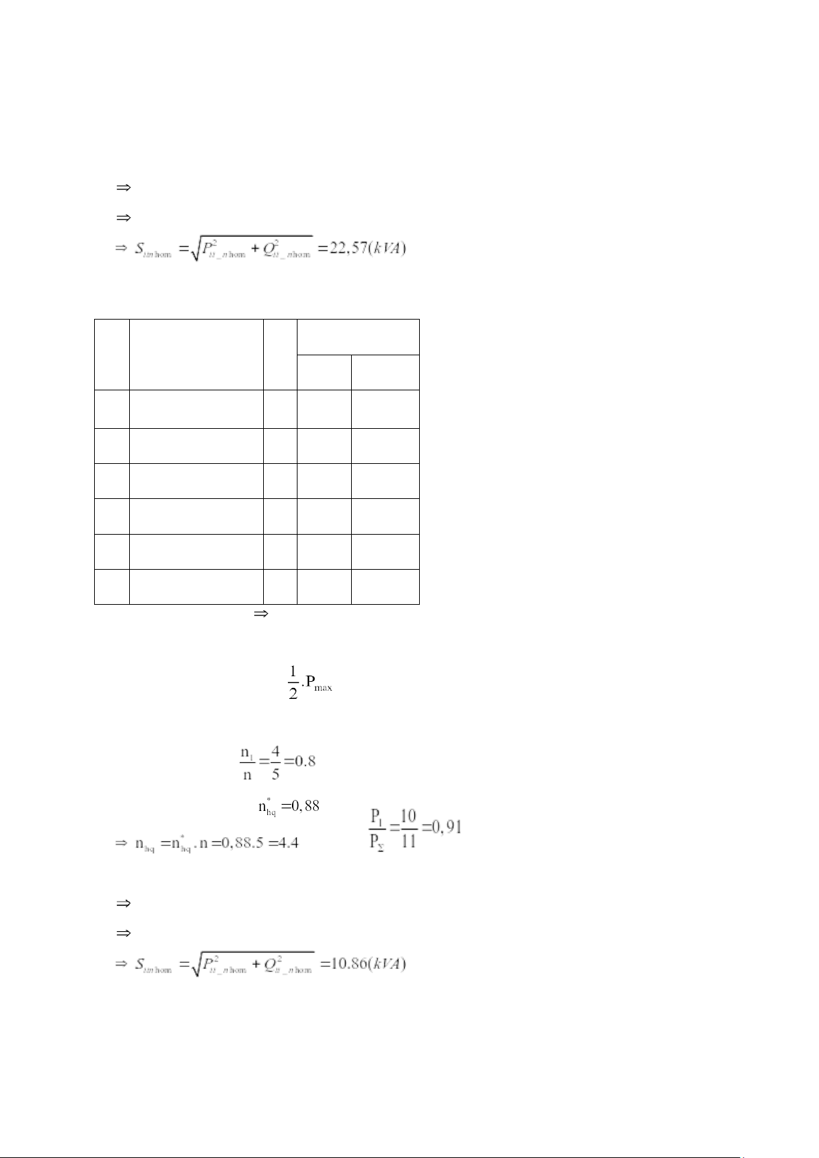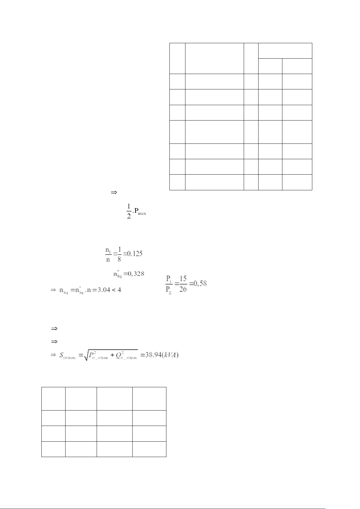 Tổng công suất của n1 thiết bị trên là P1 = 15 Số tương đối n* = Tra bảng ta tìm được ; P* =
