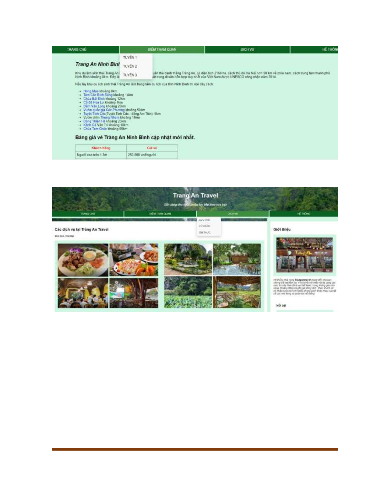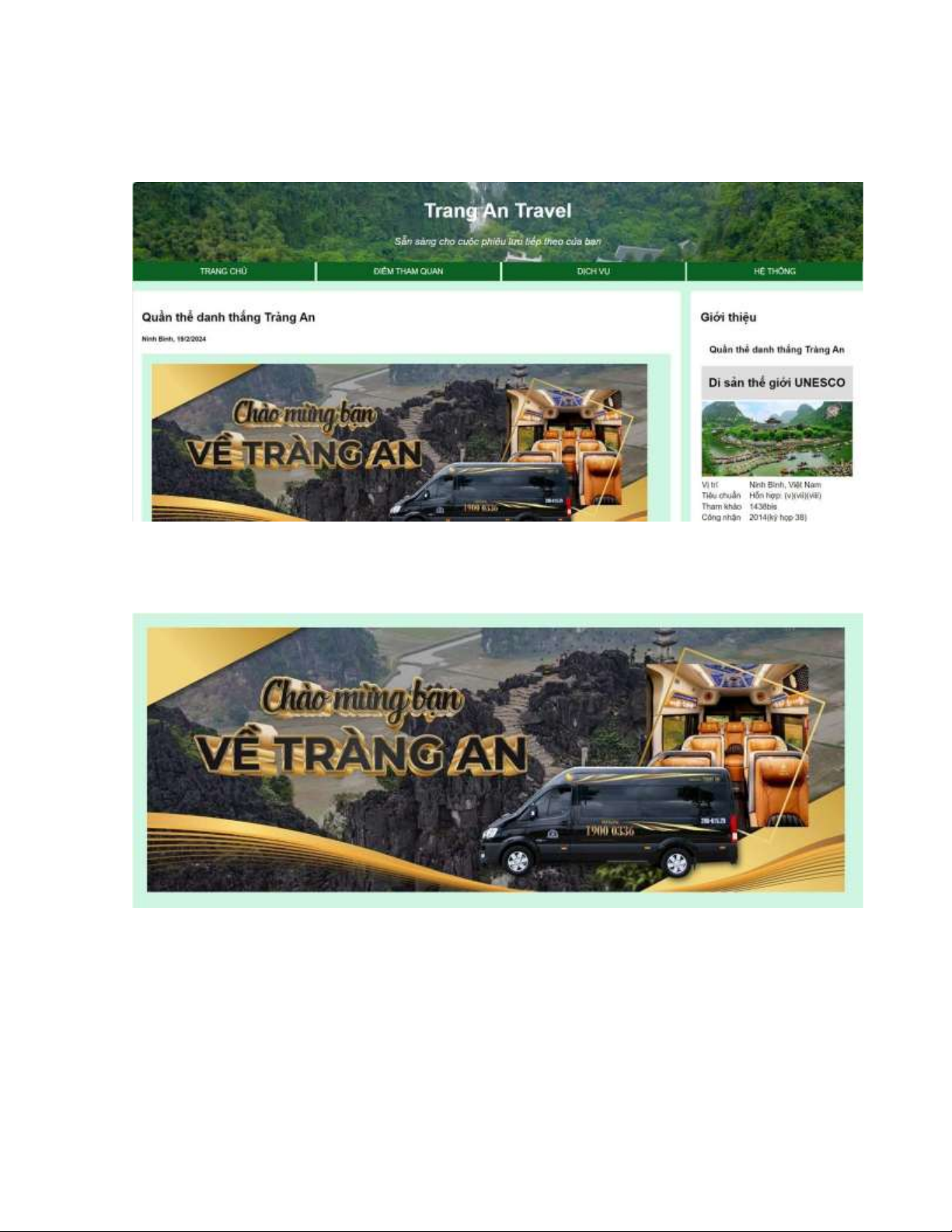 Giao diện web "Tràng An Travel" được thiết kế để cung cấp cho người dùng một trải