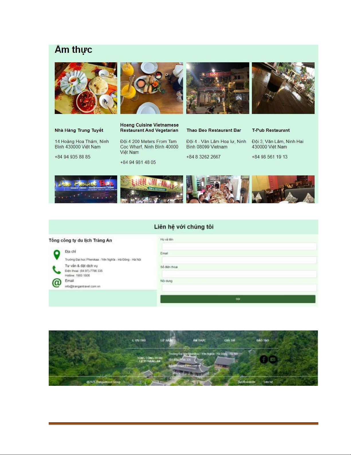 ứng đầy đủ các yêu cầu của giáo viên bộ môn, bao gồm xây dựng website du lịch