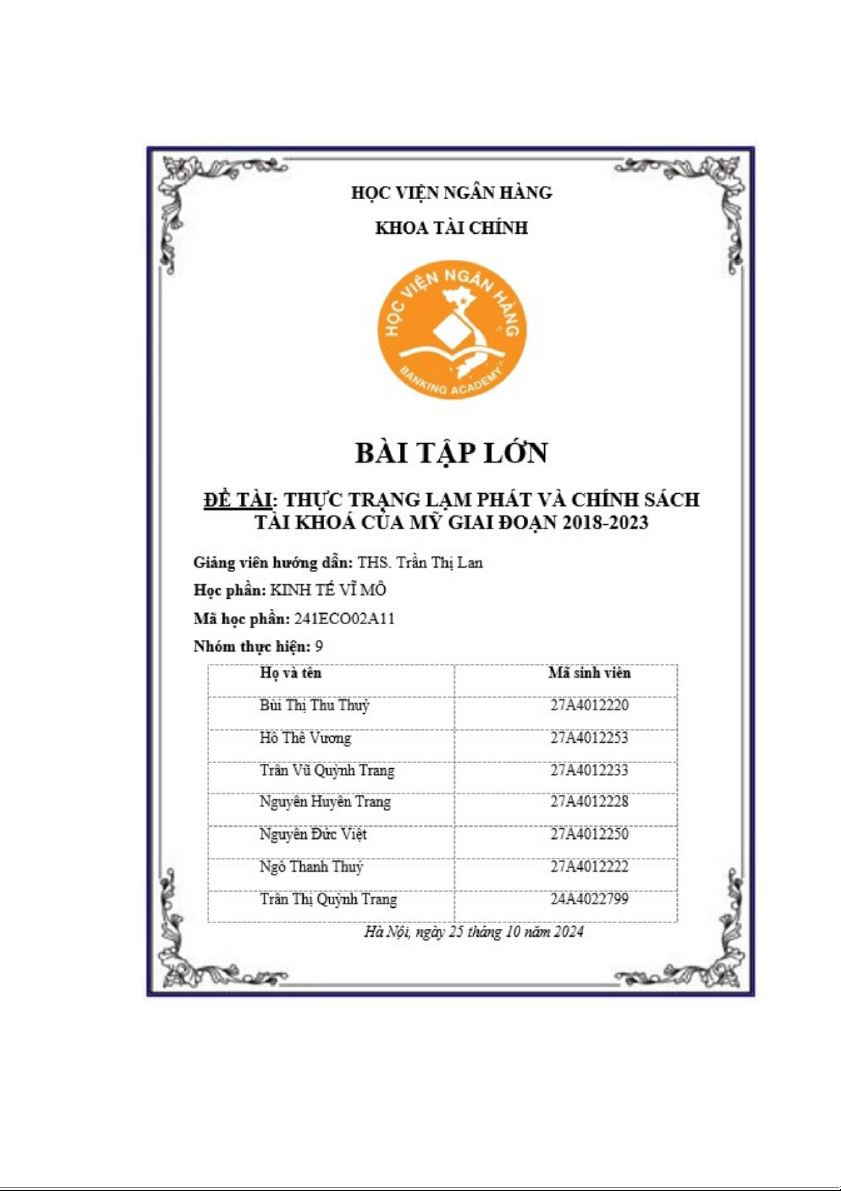 sự biến động của lạm phát. Từ đó, đánh giá được tác động và việc điều hành chính sách tài khóa của Mỹ.