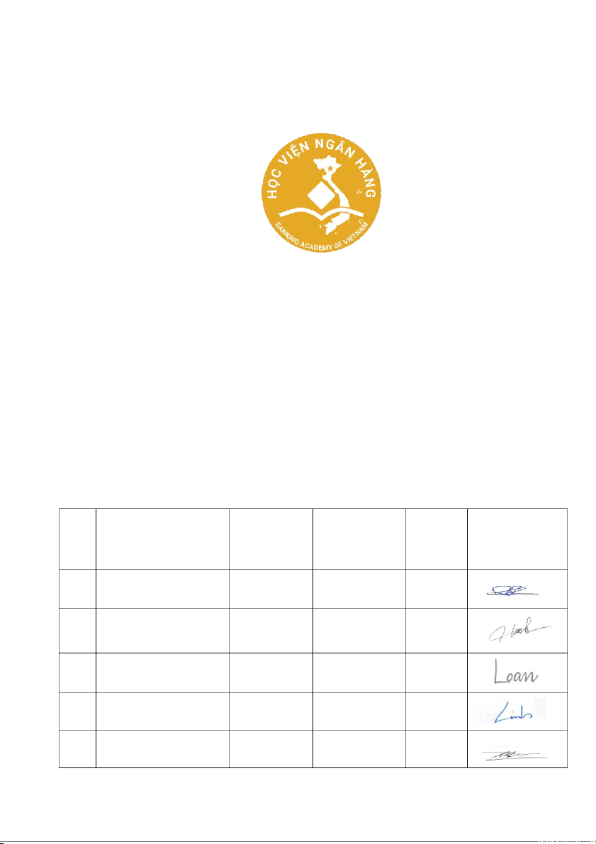 Giảng viên hướng dẫn: TS. Triệu Thu Hương Lớp: K27KDQTA Nhóm: 03 STT Họ và tên MSV Chức vụ Tỉ lệ Chữ kí đóng góp 1 Nguyễn Thị Hà Chi 27A4052538 Nhóm trưởng 20% 2 Vũ Lê Nguyên Hạnh 27A4052551 Thành viên 20% 3 Nguyễn Thị Loan 27A4052581 Thành viên 20% 4 Đặng Khánh Linh 27A4052575 Thành viên 20% 5 Trần Đức Minh 27A4052595 Thành viên 20% LỜI CẢM ƠN
