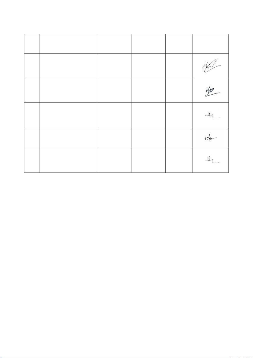 Đánh giá đóng góp của thành viên: Chữ ký STT Họ và tên Mã SV Tỉ lệ đóng góp (%) xác nhận 1