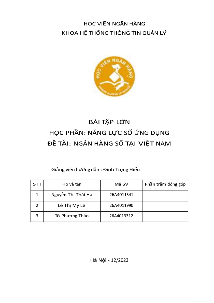 động ngân hàng, chúng em quyết định lựa chọn đề tài “Ngân hàng số tại Việt Nam” để phân