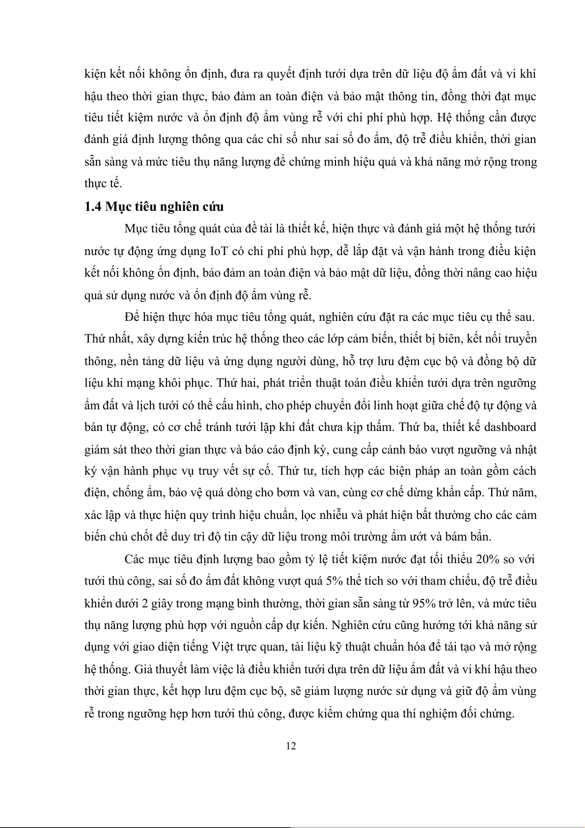 Mục tiêu tổng quát của đề tài là thiết kế, hiện thực và đánh giá một hệ thốn g tưới
