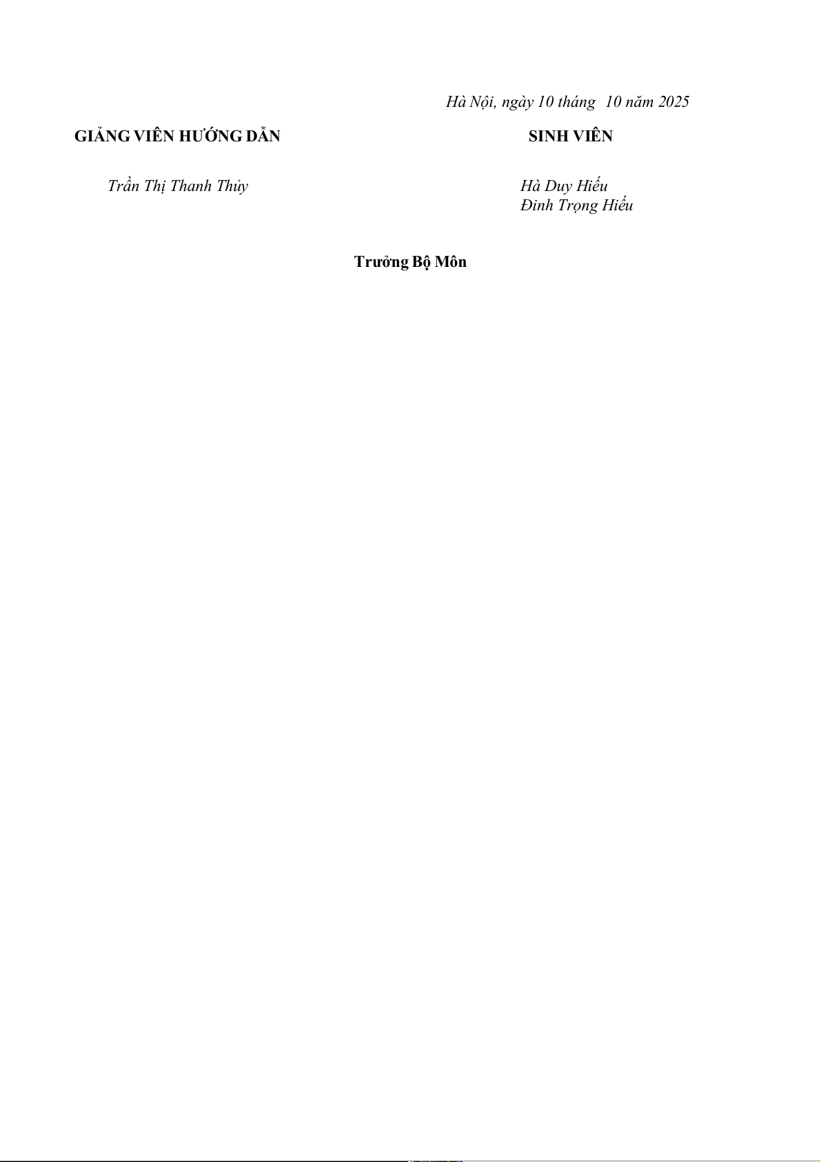 Hà Nội, ngày 10 tháng 10 năm 2025 GIẢNG VIÊN HƯỚNG DẪN SINH VIÊN Trần Thị Thanh T hủy Hà Duy Hiếu