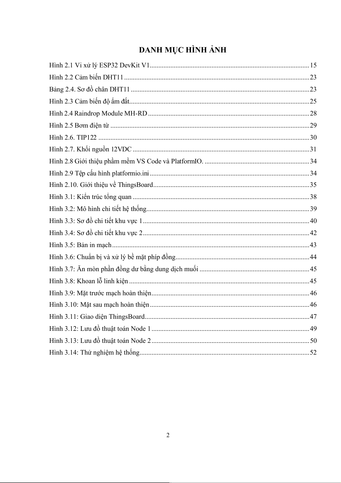 + Cảm biến độ ẩm đất + Cảm biến mưa − Ngoại vi 2.2. Phần mềm − ThingsBoard − VS Code - PlatformIO