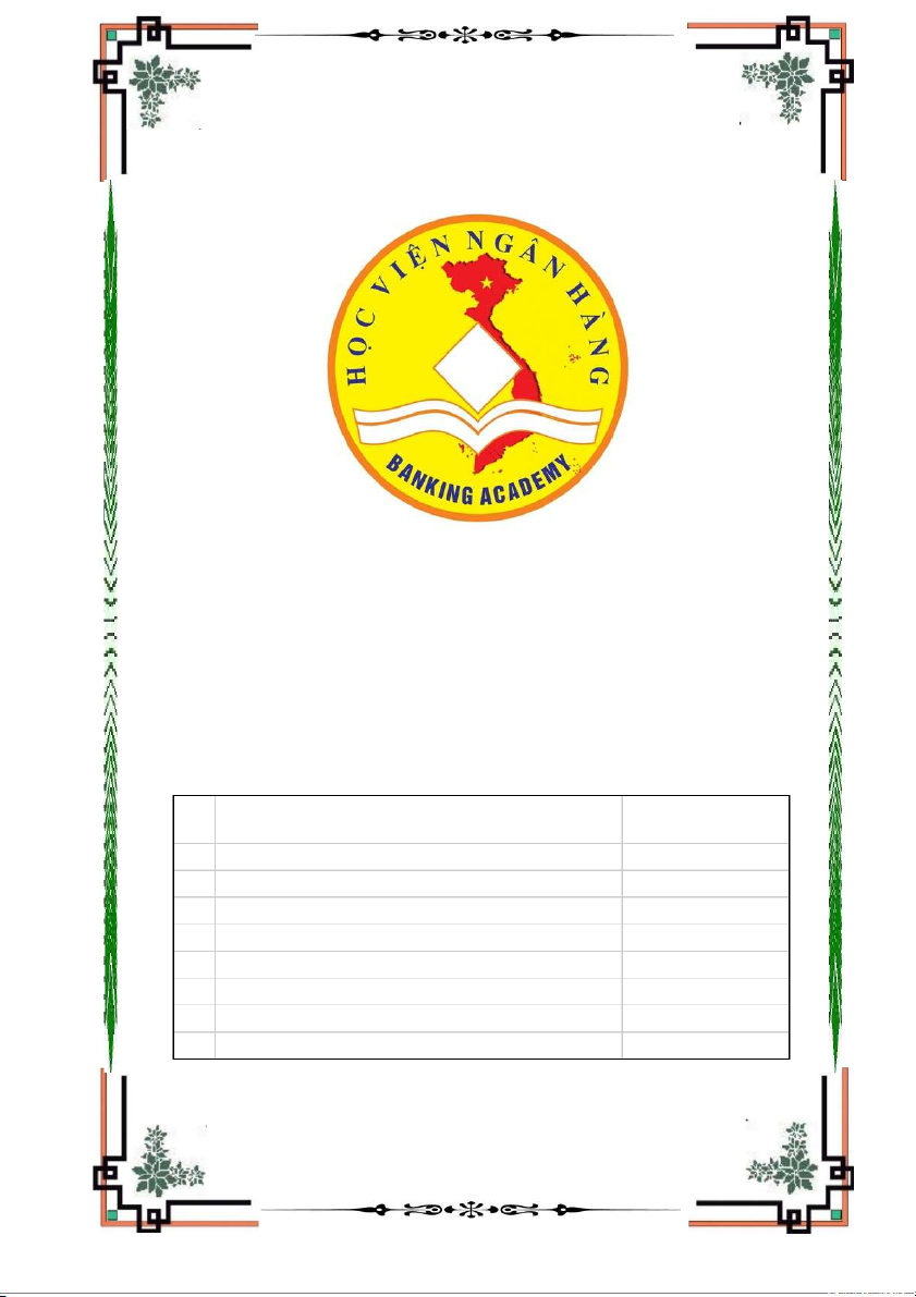 HỌC VIỆN NGÂN HÀNG KHOA KINH TẾ NHÓM SỐ 2 BÀI TẬP LỚN