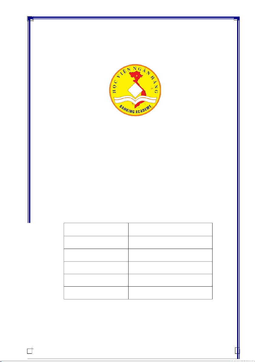 HỌC VIỆN NGÂN HÀNG KHOA NGÂN HÀNG BÀI TẬP LỚN