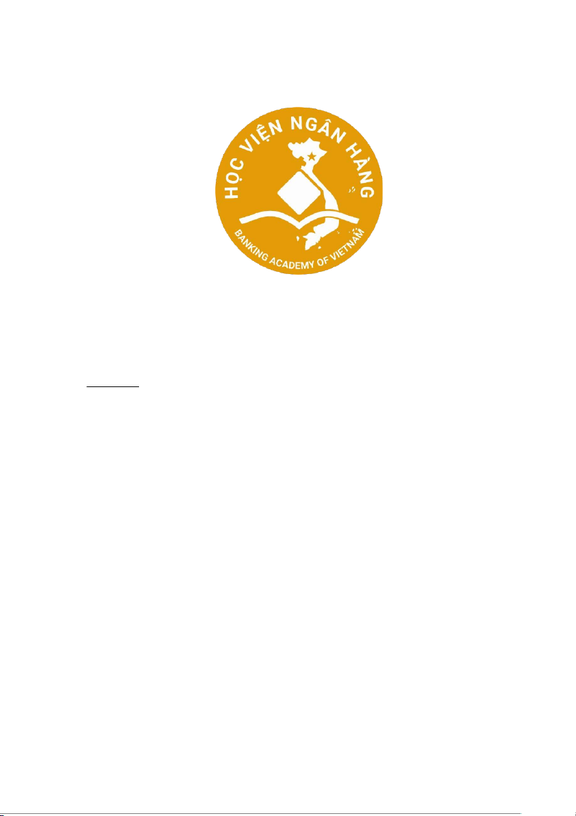 HỌC VIỆN NGÂN HÀNG KHOA NGÂN HÀNG BÀI TẬP LỚN