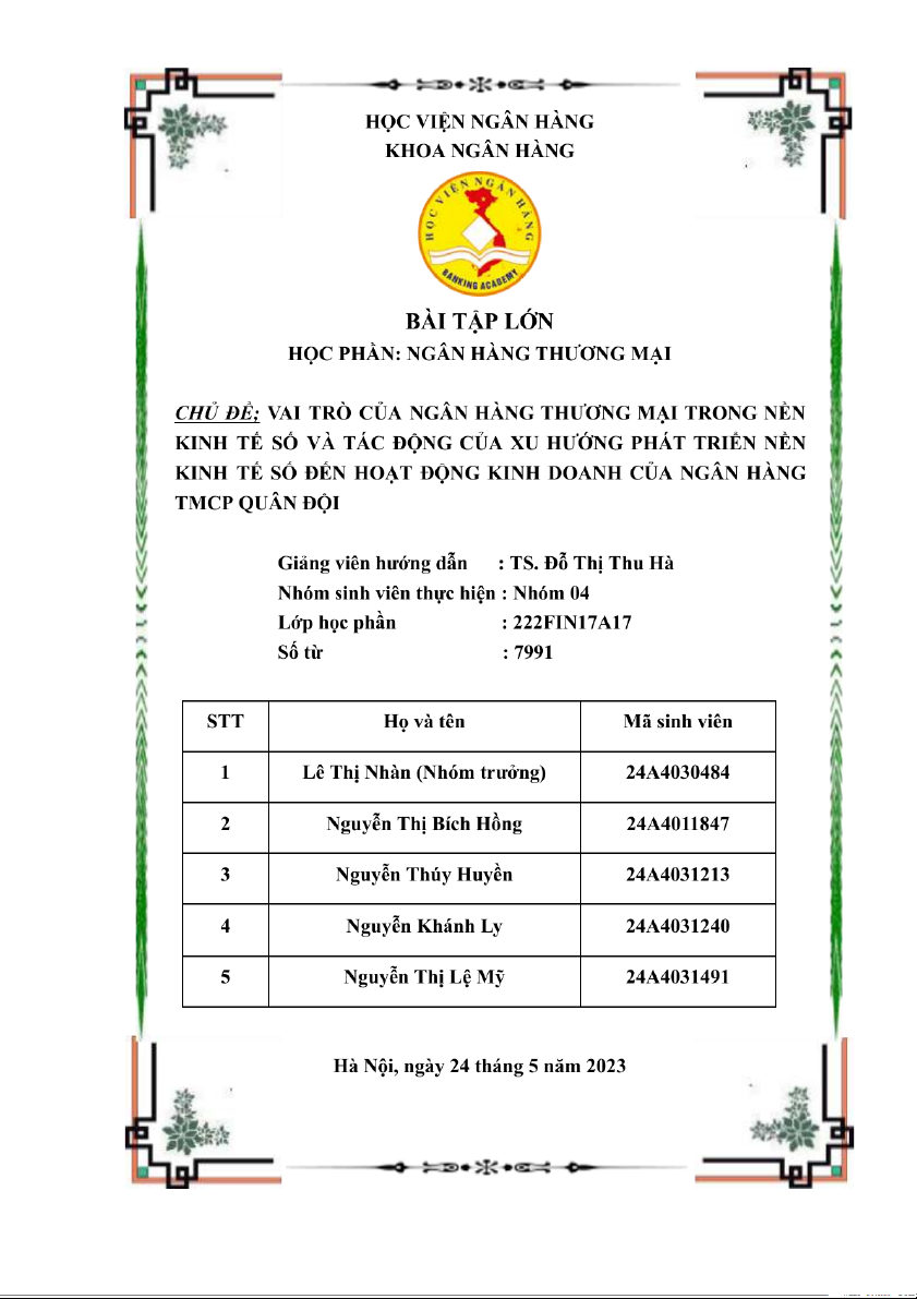 xu hướng phát triển kinh tế số tới hoạt động của ngân hàng TMCP Quân Đội”.