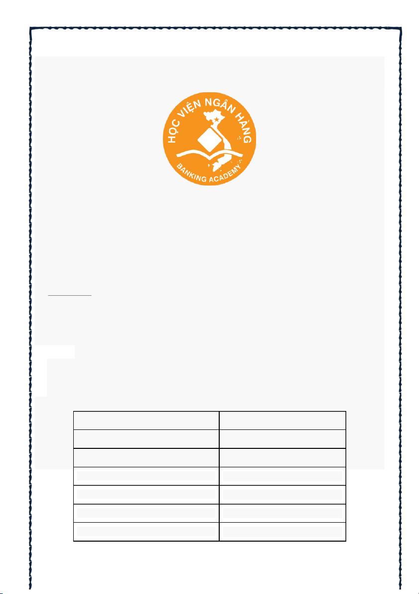 HỌC VIỆN NGÂN HÀNG KHOA NGÂN HÀNG BÀI TẬP LỚN