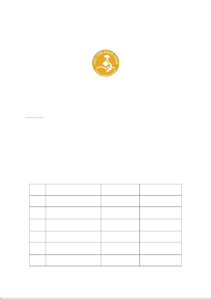 HỌC VIỆN NGÂN HÀNG KHOA NGÂN HÀNG ---------- BÀI TẬP LỚN
