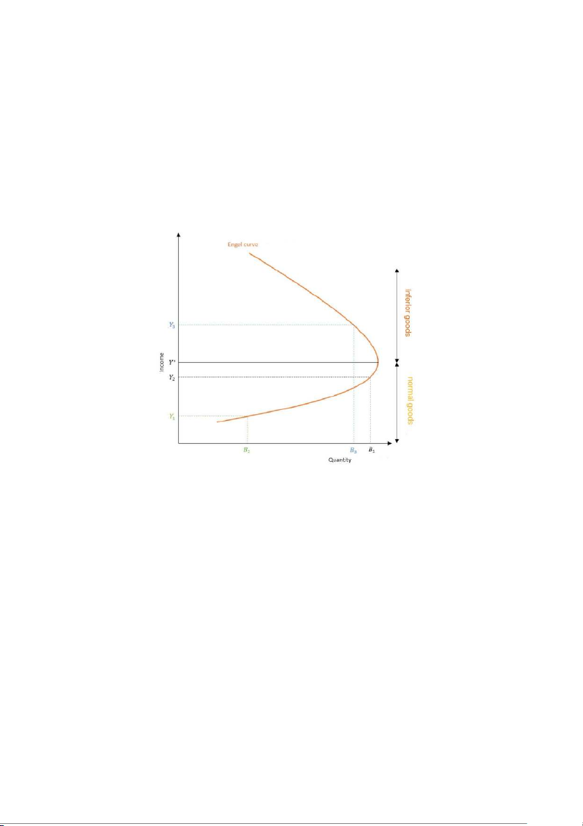 + Hàng hóa thứ cấp: Những hàng hóa có cầu giảm đi khi thu nhập tăng. Đường cong Engel