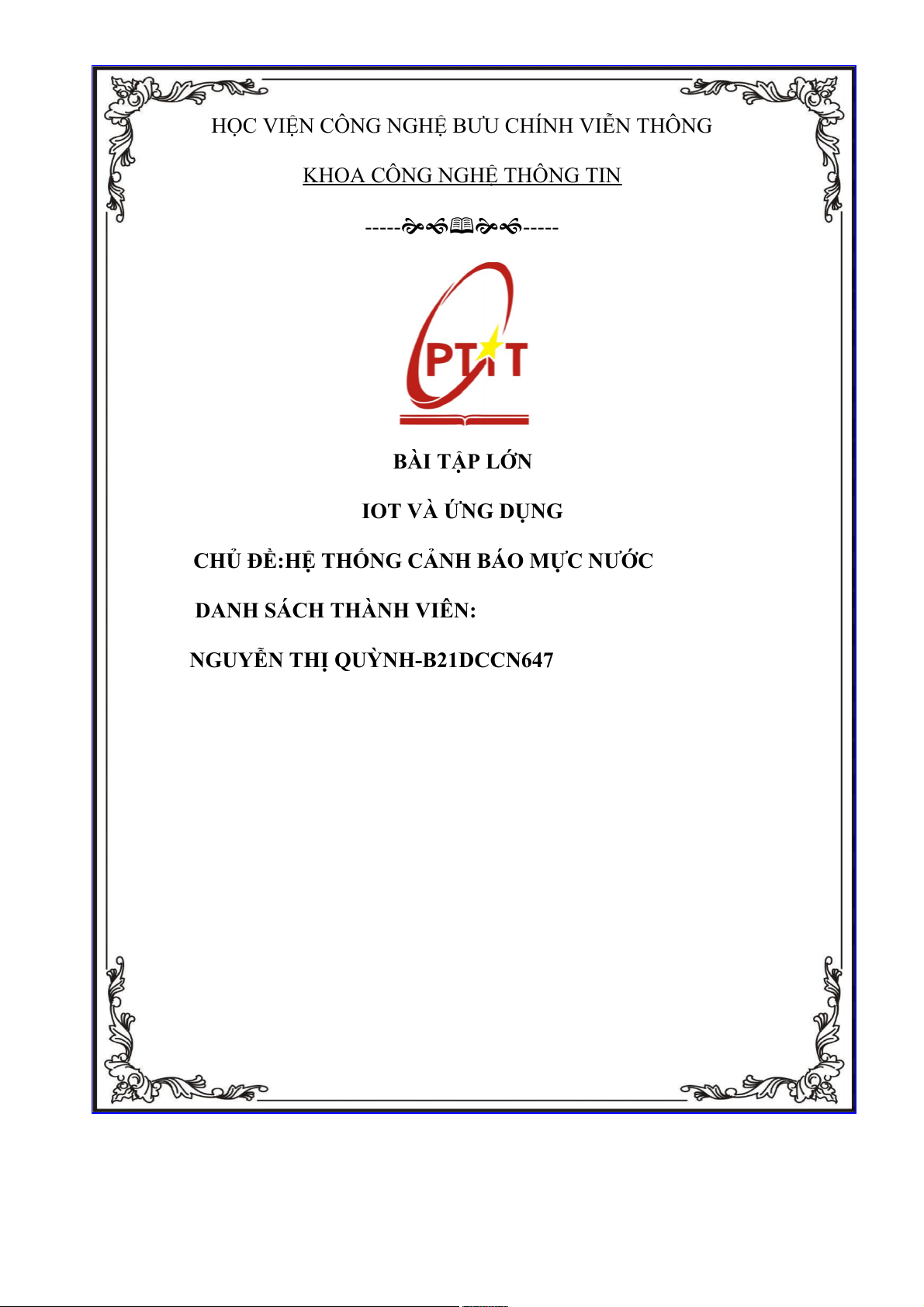 HỌC VIỆN CÔNG NGHỆ BƯU CHÍNH VIỄN THÔNG KHOA CÔNG NGHỆ THÔNG TIN -----🙞🙜🕮🙞🙜----- BÀI TẬP LỚN IOT VÀ ỨNG DỤNG