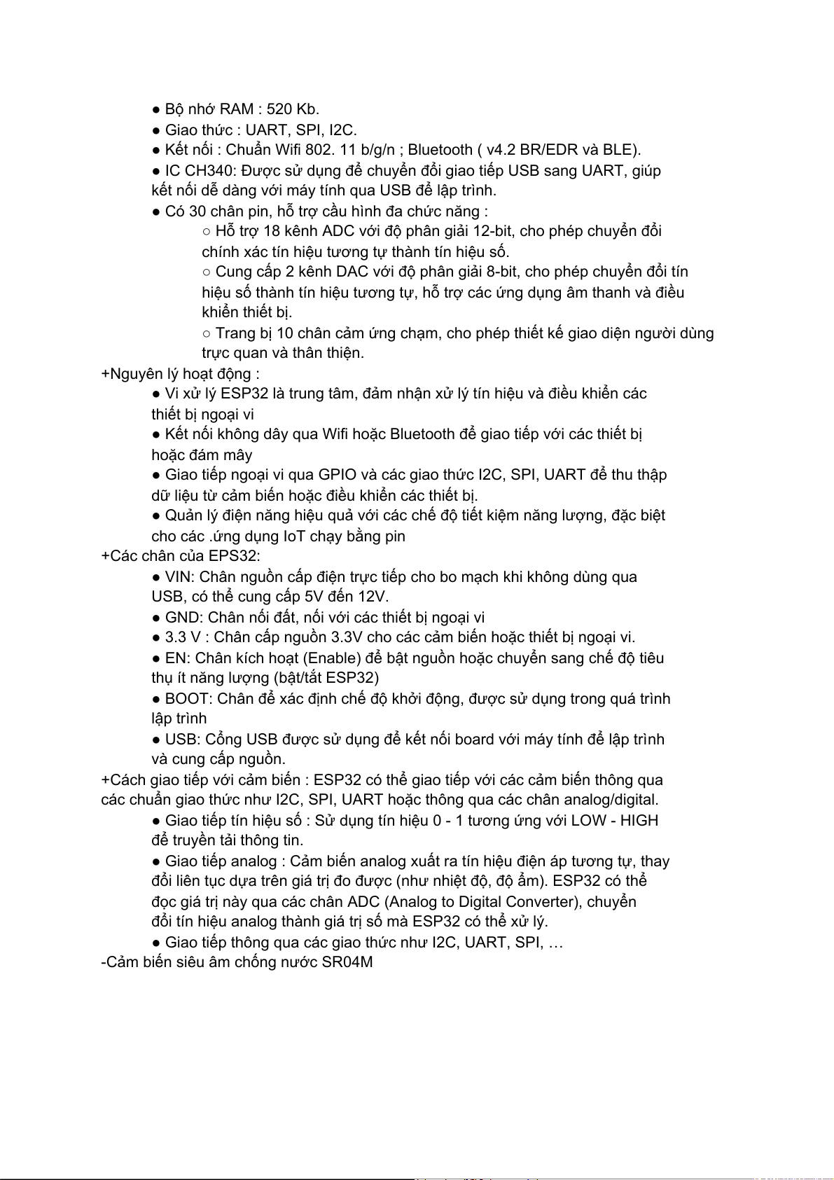 cho các .ứng dụng IoT chạy bằng pin +Các chân của EPS32: