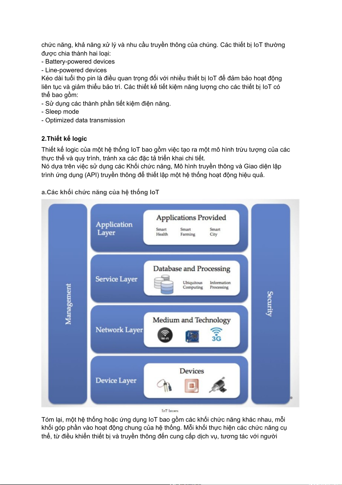 Tóm lại, một hệ thống hoặc ứng dụng IoT bao gồm các khối chức năng khác nhau, mỗi